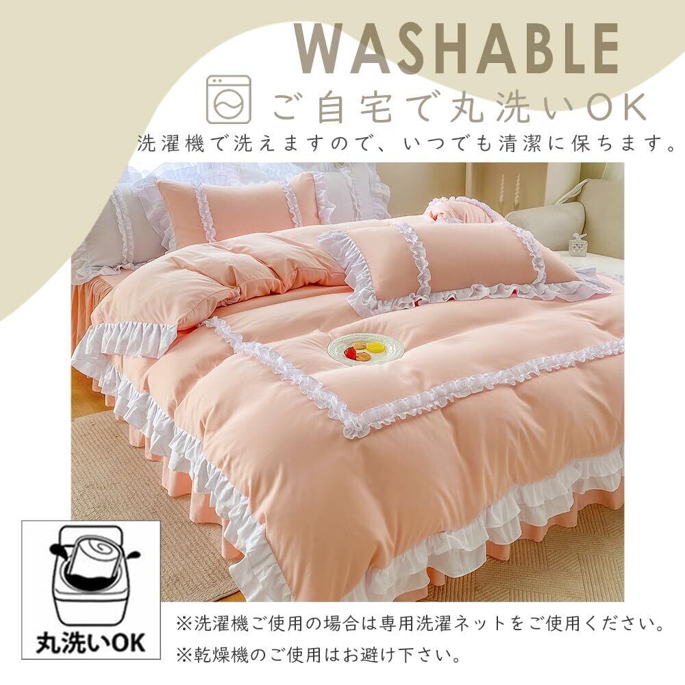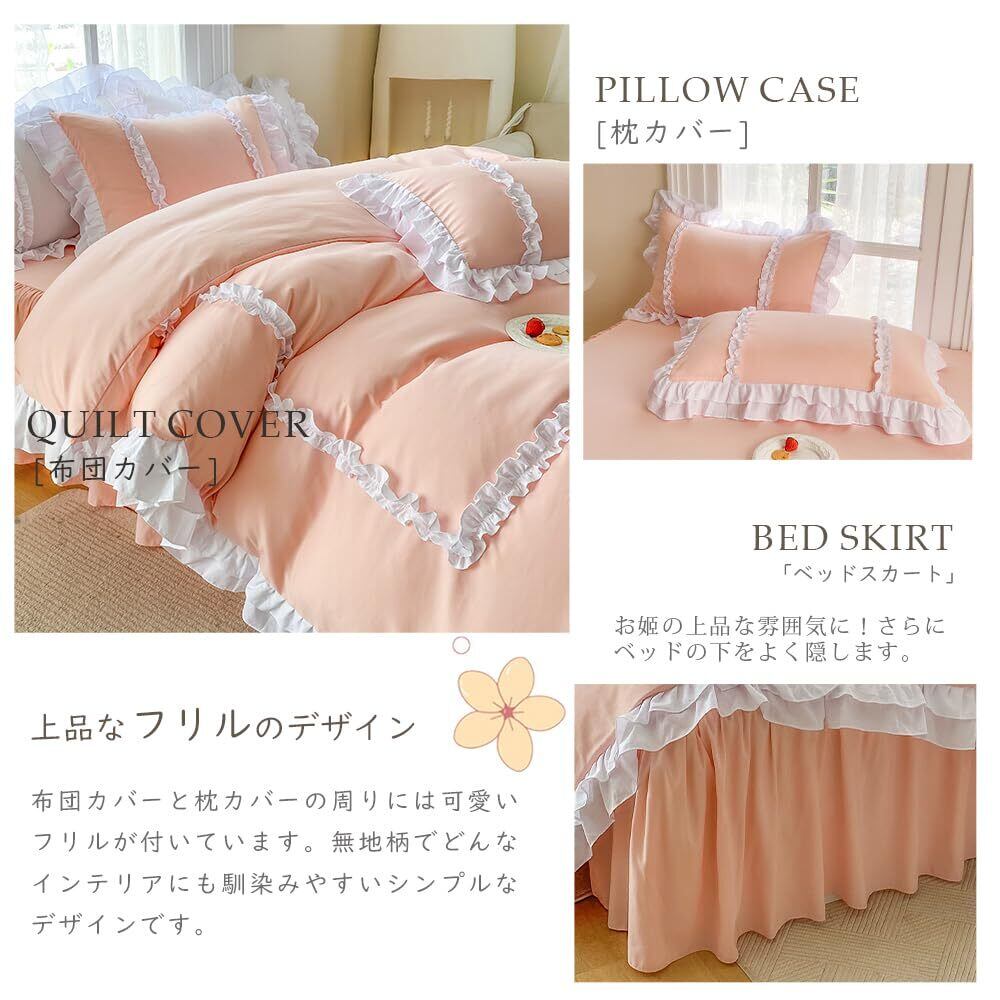 布団カバーセット 掛けふとんカバー 寝具カバー ふとんカバー シングル セミダブル 敷布団カバー 掛け布団カバー ベッドスカート 可愛い フリル付き 肌に優しい おしゃれ 姫風 可愛い 北欧 新生活 引っ越し 清潔 丸洗いOK (ピンク, セミダブル-4点セット)
