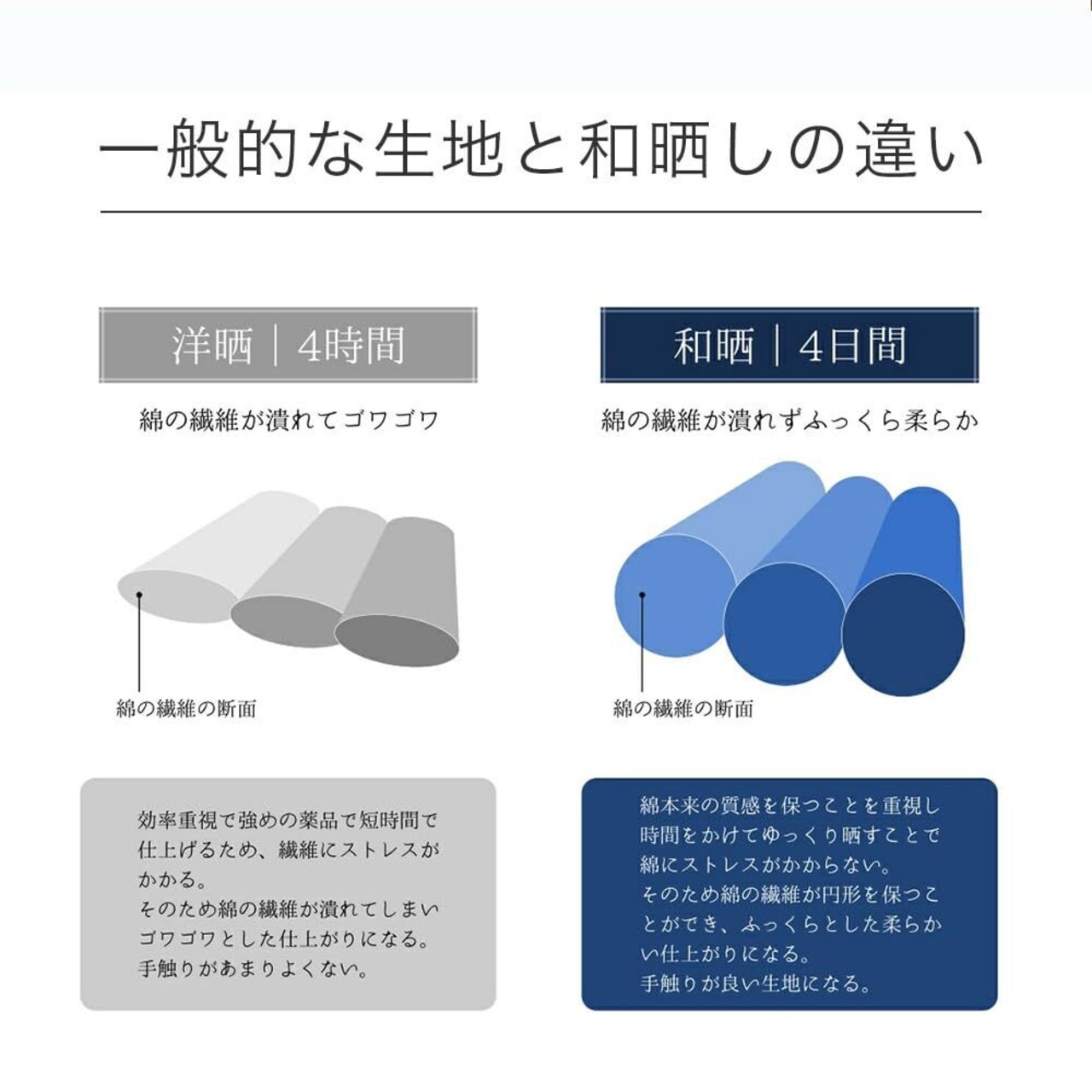 綿100%の和晒しガーゼ生地を使用した無地カラーの商品です。綿100%の生地ですのでお肌の敏感な方や、赤ちゃんにもおすすめできます。お届けした状態のときは少し固く感じるかと思いますが、お洗濯をしていくうちにふんわりと柔らかくなっていきます。