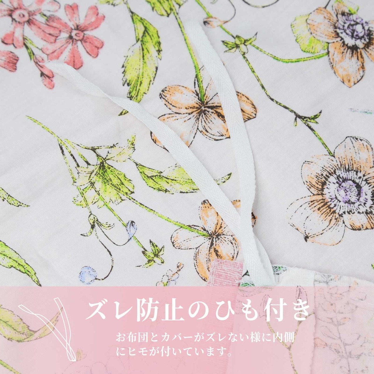 【仕様】掛けふとんカバー:片側194cmファスナー付き、8ヶ所ヒモ付き