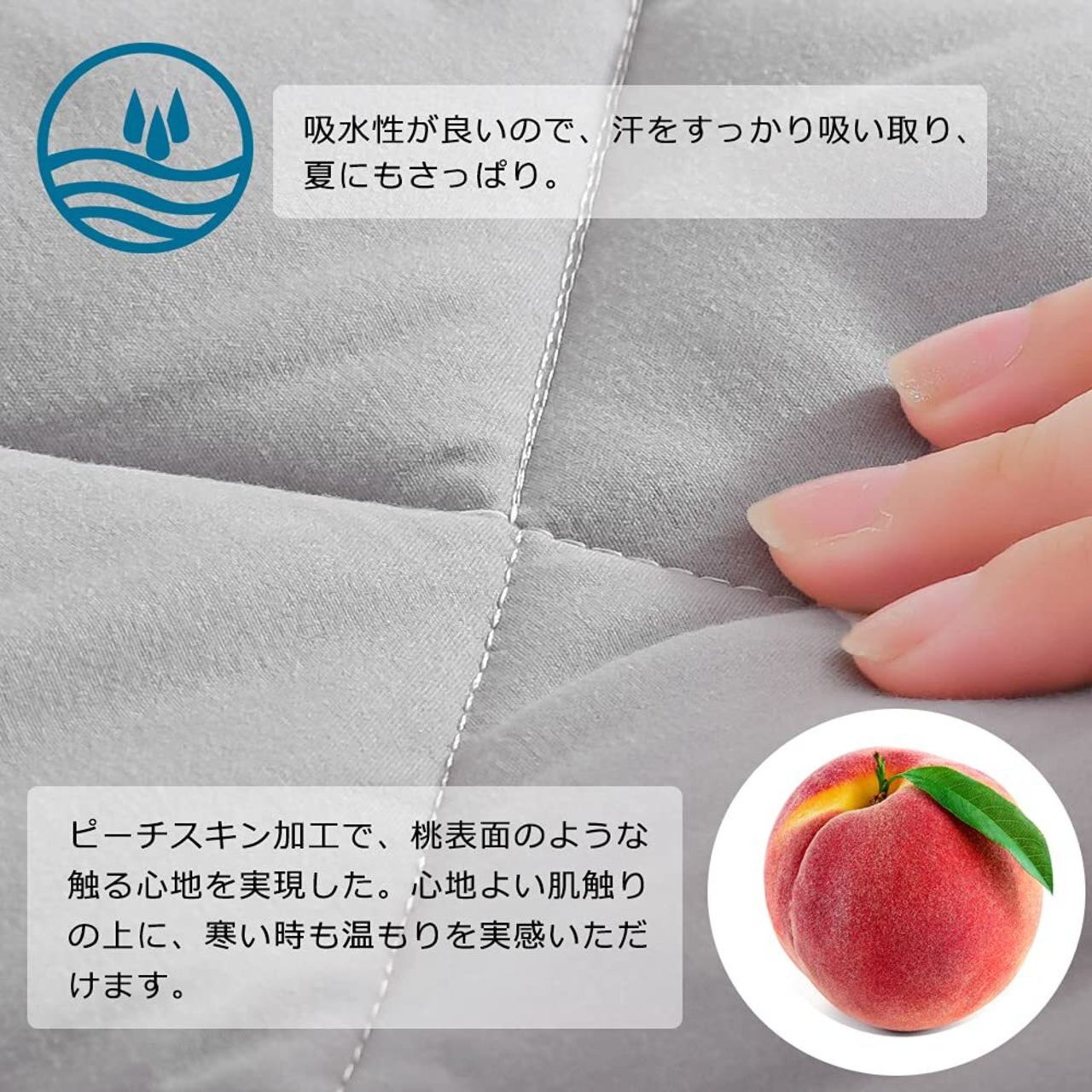 <肌にやさしい>:ピーチスキン加工で、いつも触りたい、桃のような肌触りが実現できまして、寒い時期にも温もりを実感していただけます。優れた吸水性と通気性を備える素材で織り上げた敷パッドだから、夏にもさっぱり。また防臭・抗菌防ダニ加工、色落ちない、シミがない、シワになりにくい、静電気も少ないなどのポイントで、シーツ不要で直接に安心にお使えいただけます。