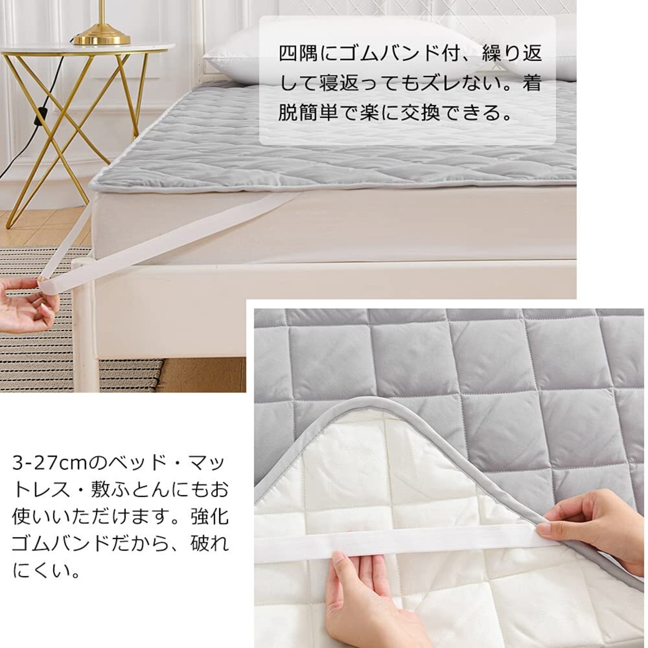 <強化ゴムバンド付>:四隅に強化ゴムバンド付、3-27cmのマットレス・ベッド・敷ふとんがしっかり固定できます。いくら寝返りしてもズレないです。取り付けやすいので、交換するときもラクラク。