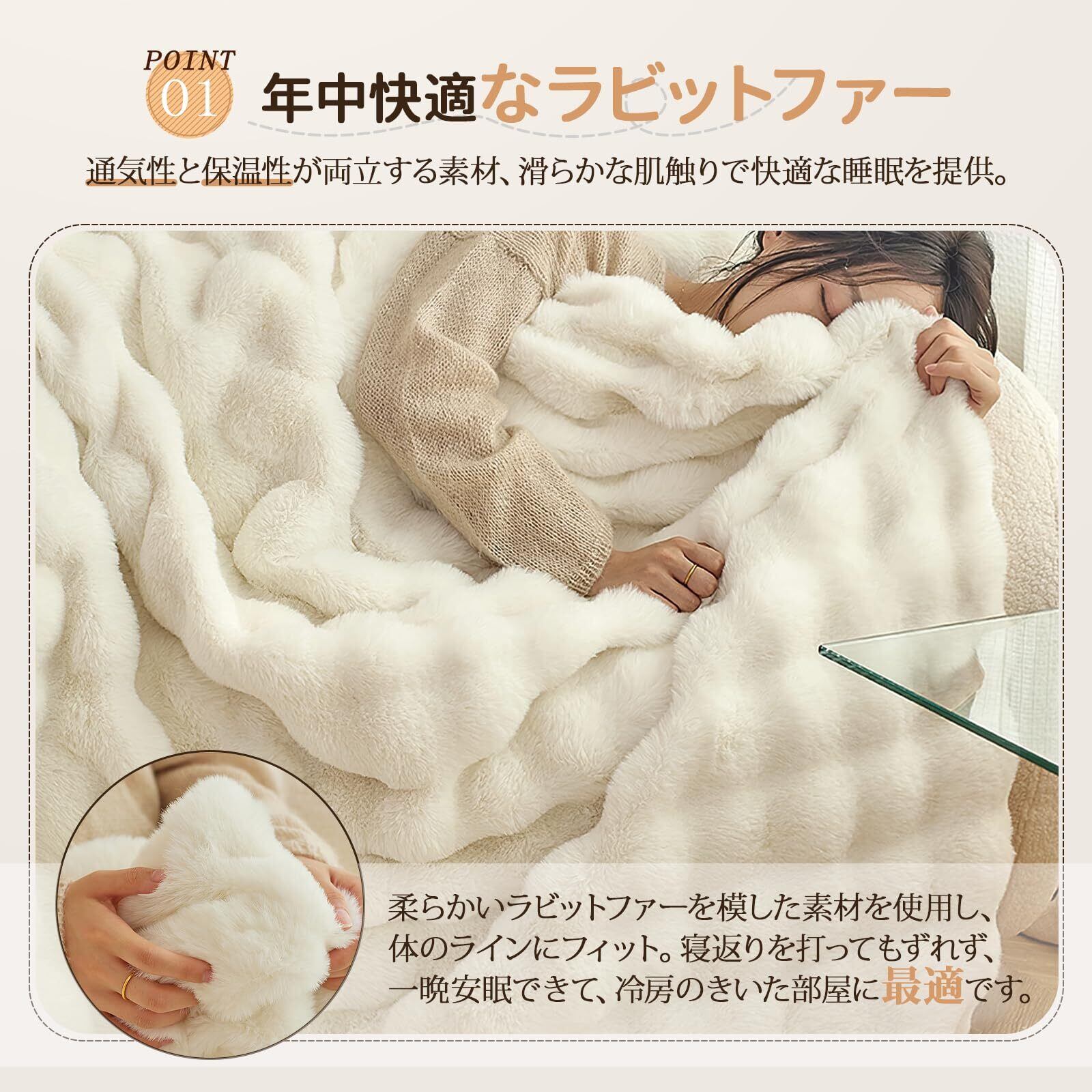 【毛布仕様】上層:ラビット調ファー 下層:ミンクファー調ファー サイズ:130*160cm カラー:ホワイト 重さ:2.15kg 洗濯機で洗えるブランケット仕様。