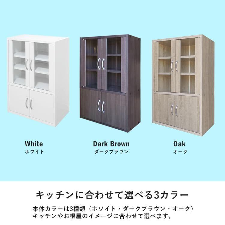 キッチンラック 食器棚 ワイド 幅60cm 高さ80cm ミドルタイプ コンパクト 薄型 一人暮らし 扉タイプ ガラス扉 シンプル オーク 組立品