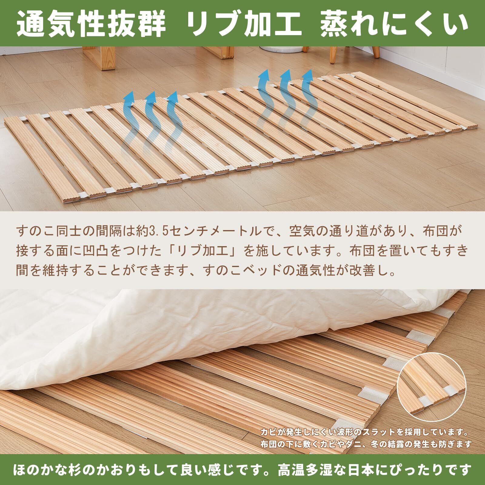 すのこベッド ダブル すのこ ロール スノコ ベッド 国産杉 折りたたみベッド すのこ ダブル ベッド フレーム 木製 すのこマット 湿気/カビ対策 滑り止め