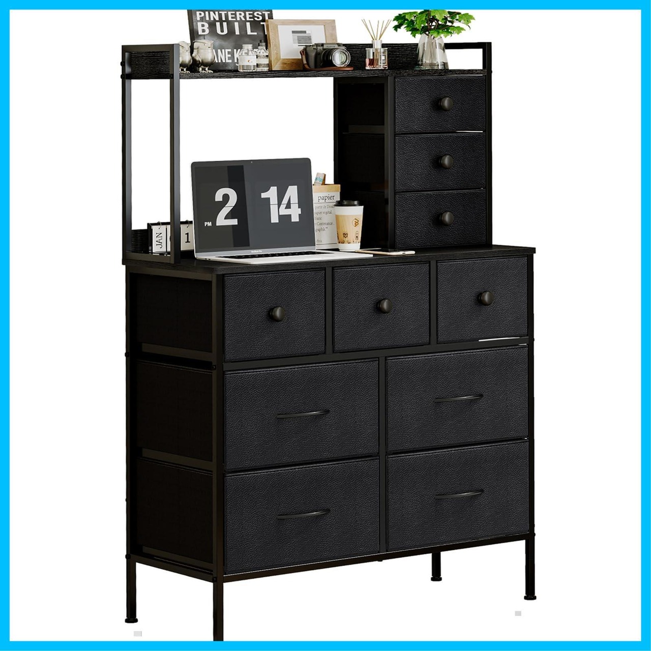 【特価セール】ハイチェスト タンス 収納チェスト・ドレッサー/化粧台・テーブル 幅80cmマルチチェスト 収納棚 棚付き 布製引き出し10杯 洋服・衣類収納・衣装ケース 箪笥 おしゃれ(高防水性皮革 ブラック)