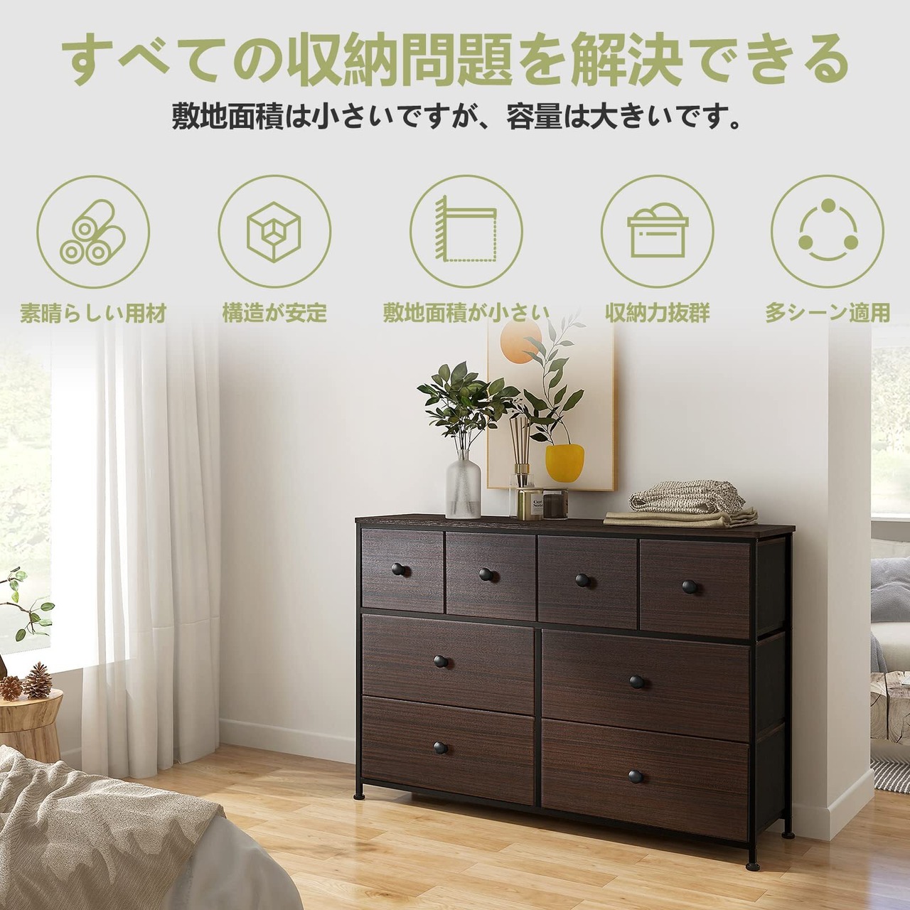 【素晴らしい用材】すべての細部は製品の高品質の体現です。滑らかな木製取っ手は天然木材で作られています。新型カチオン生地は不織布よりもしっかりしていて、破損しにくいです。表面は防水加工があって、拭くことができて、清潔しやすいです。3mmMDF中間層は引き出しの底をより丈夫にして、耐荷重が増えます。中空スチール構造は丈夫で自重も軽くできます。すべての用材は心を込めてアップグレードしていて、本店の製品は市場の同種の製品より優れていることを目指しています。