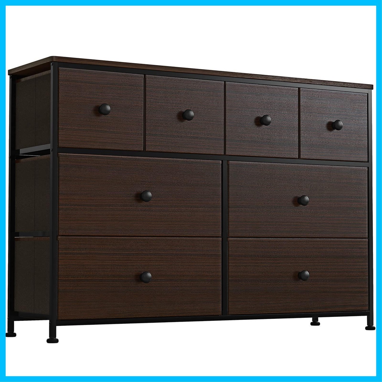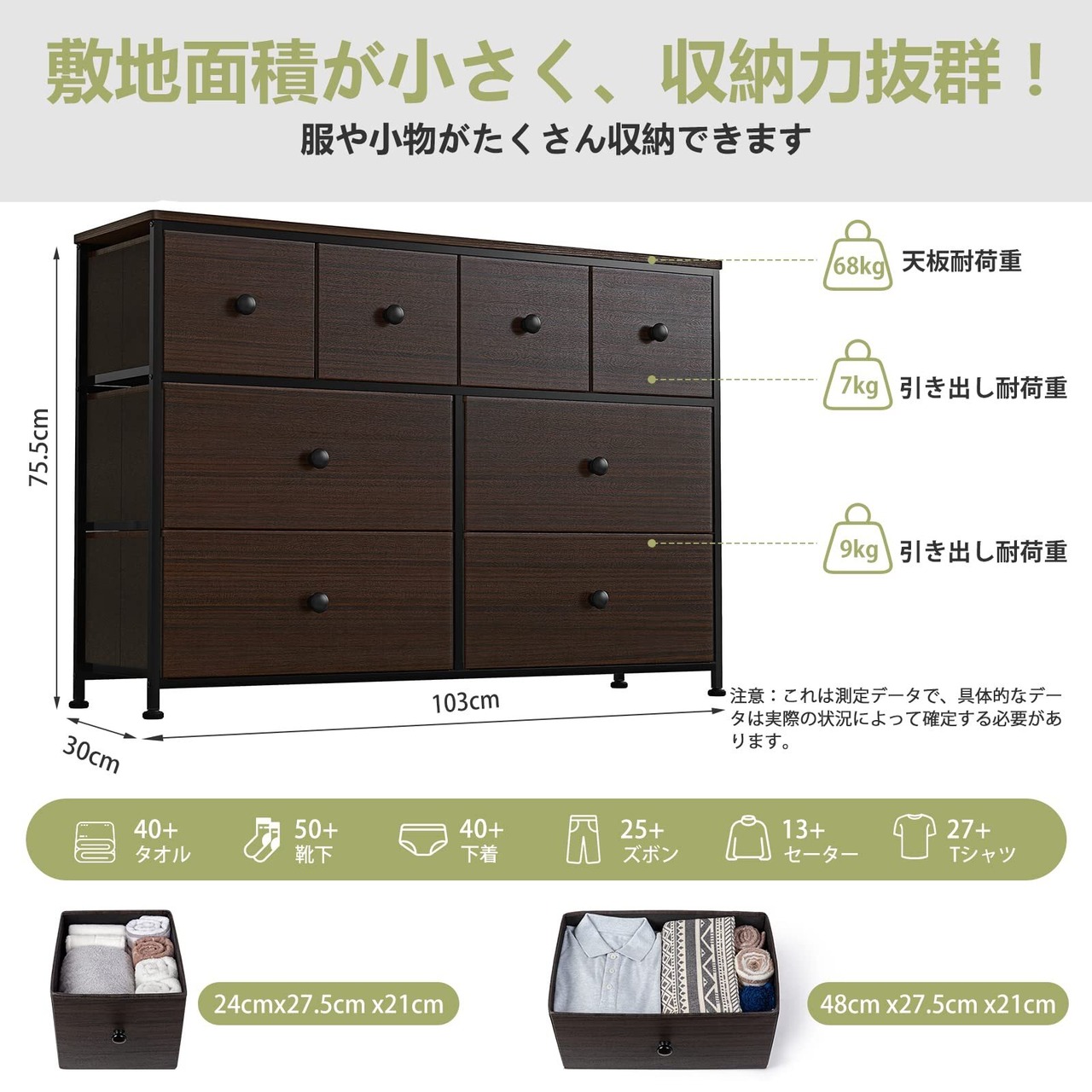 【特価商品】REAHOME チェスト 3段8杯布製チェスト 洋服引き出し収納タンス 小物・衣類収納ボックス おもちゃ箱 ルームケース ファブリックチェスト 木製天板付き スチールフレーム 多機能 大容量 変形にくい 簡単組立 転倒防止 (ブラウン)