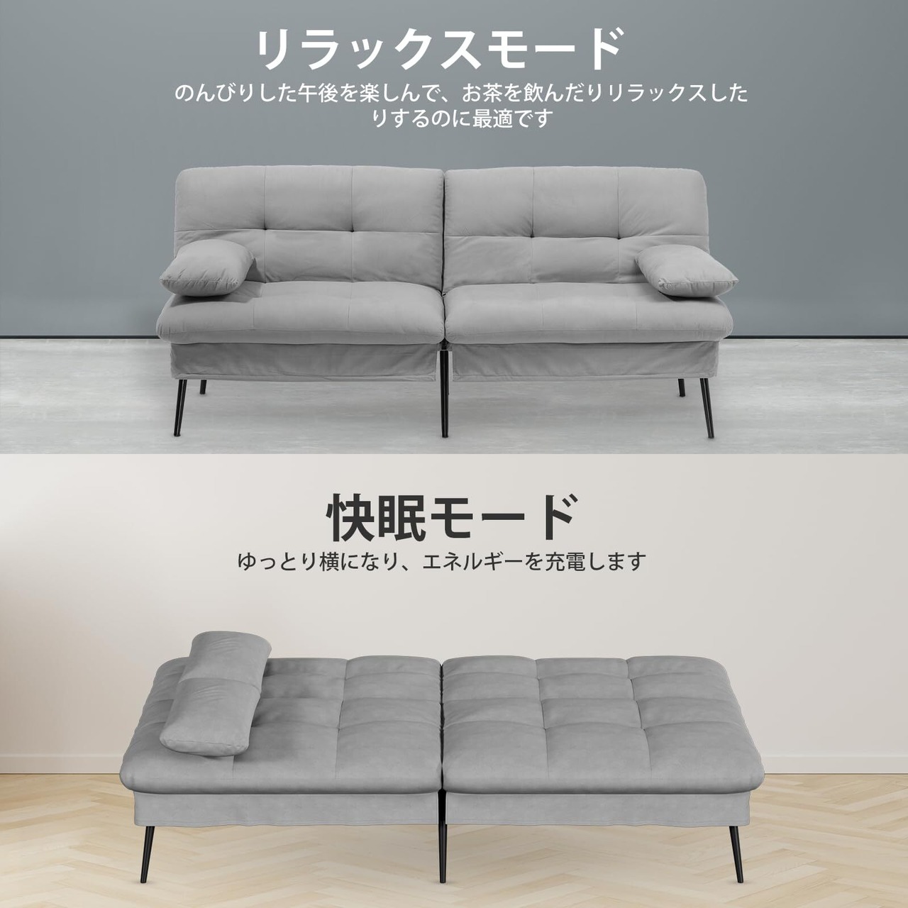 ComHoma ソファーベッド ソファベッド カウチソファー 1人掛け 2人掛け リクライニングソファー【6段階調節】 ソファー ベッド ベッドになるソファ一 肘掛付き スクラブ生地 コンパクト 幅174cm 分割 取り付け簡単 鋼材の足部 収納 猫の爪に強い 高い通気性 B001-GY