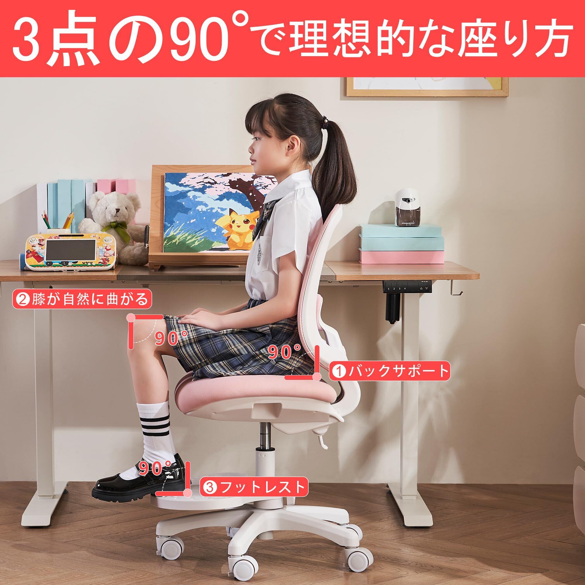 MOCHHOFU学習椅子 勉強椅子 姿勢矯正 小学生 子供 学習チェア 回転 勉強机 椅子 キャスター付き ホワイト 背もたれ調節 足置き 高さ調節 かわいい 座面高さ調節可能[(Pink)