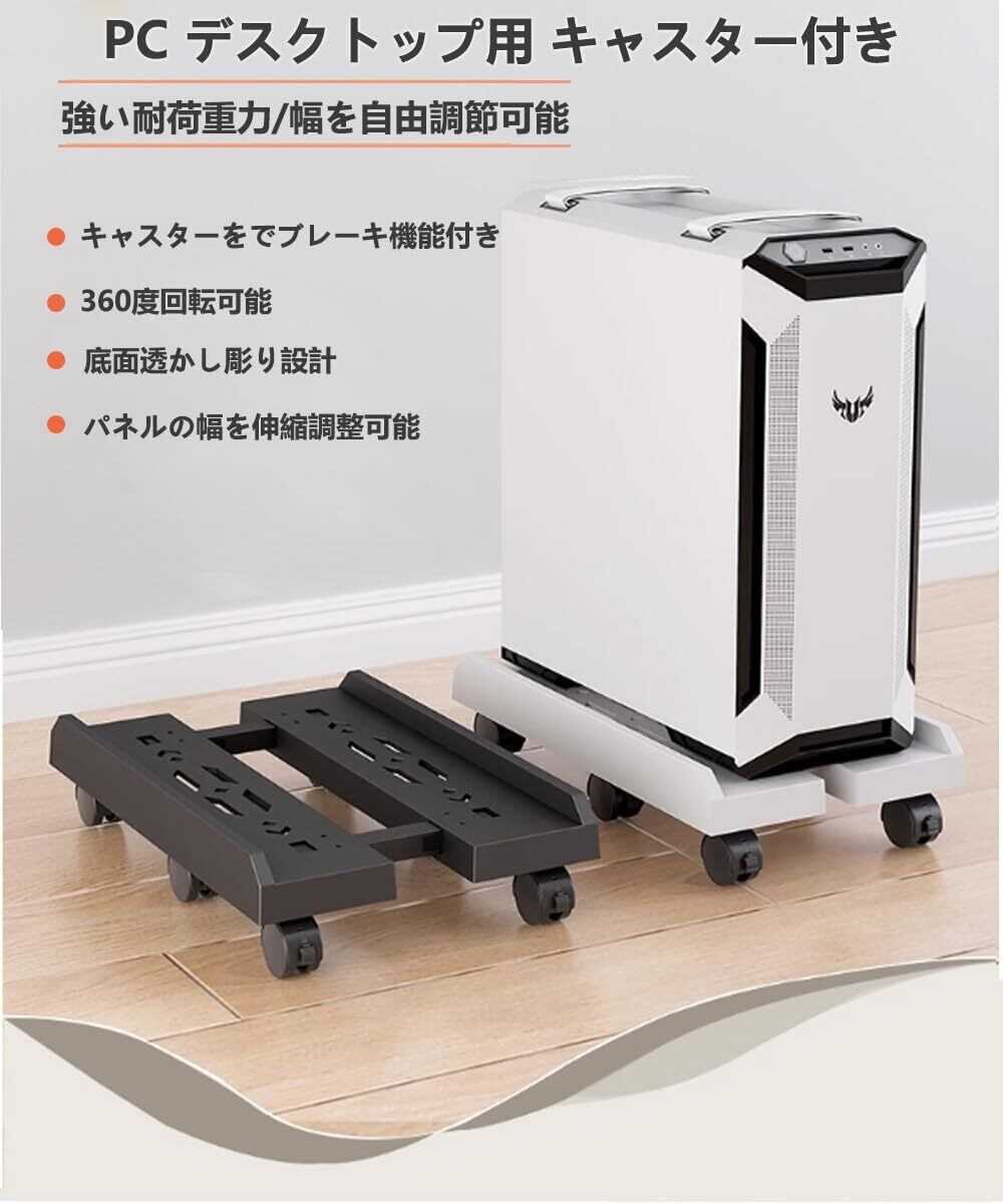 CPUスタンド キャスター付 パソコン CPUワゴン デスクトップ用 ほこり対策 カーペット 内寸幅20~ 28cm無段階調節 ゲーミングPC 耐荷重:40kg パソコンスタンド (ホワイト)