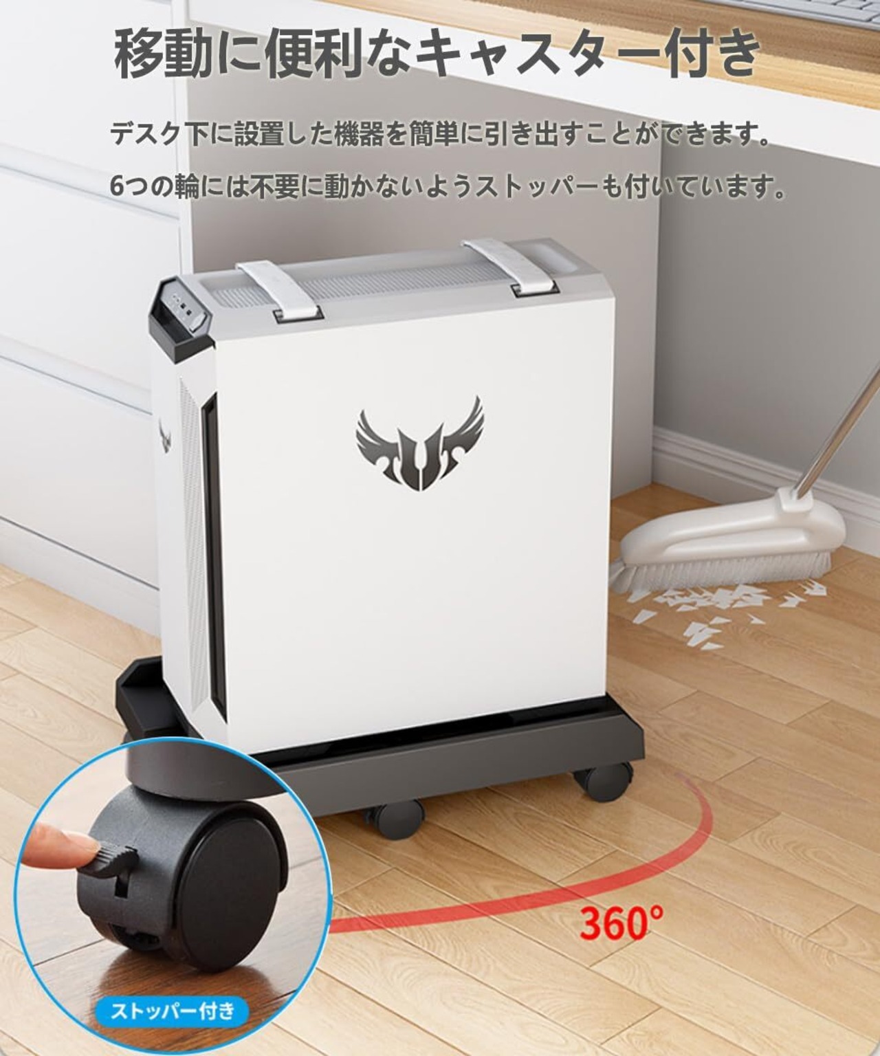 【数量限定】CPUスタンド キャスター付 パソコン CPUワゴン デスクトップ用 ほこり対策 カーペット 内寸幅20~ 28cm無段階調節 ゲーミングPC 耐荷重:40kg パソコンスタンド (ホワイト)