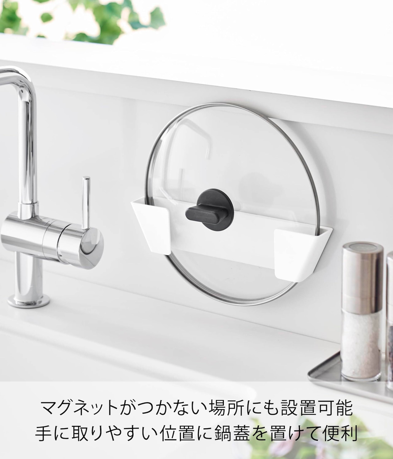 マグネットがつかない場所に設置でき調理スペースを広く使うことができる鍋蓋ホルダー。
