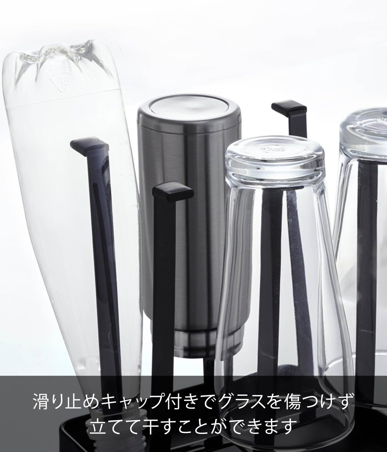滑り止めキャップ付きで、グラスを傷めず、しっかり立てて干すことができます。