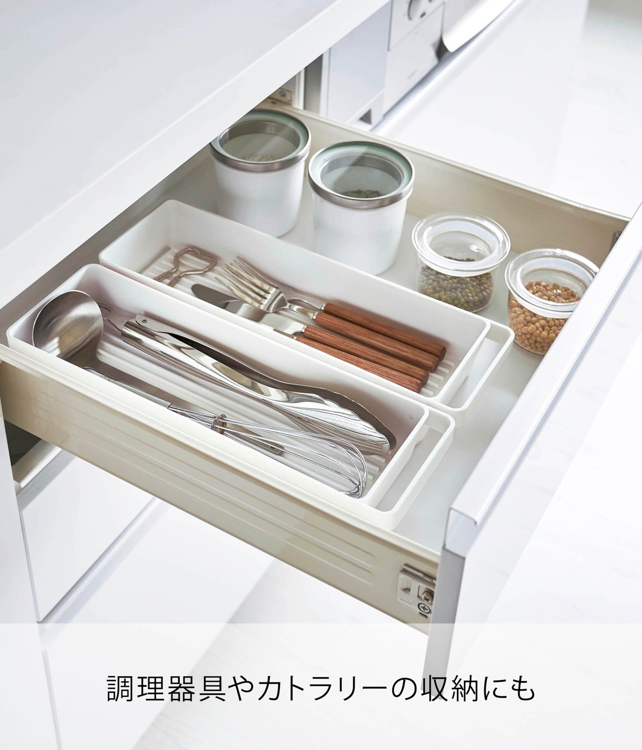 瓶類や小さなキッチン雑貨、カトラリー類などの収納にも便利。