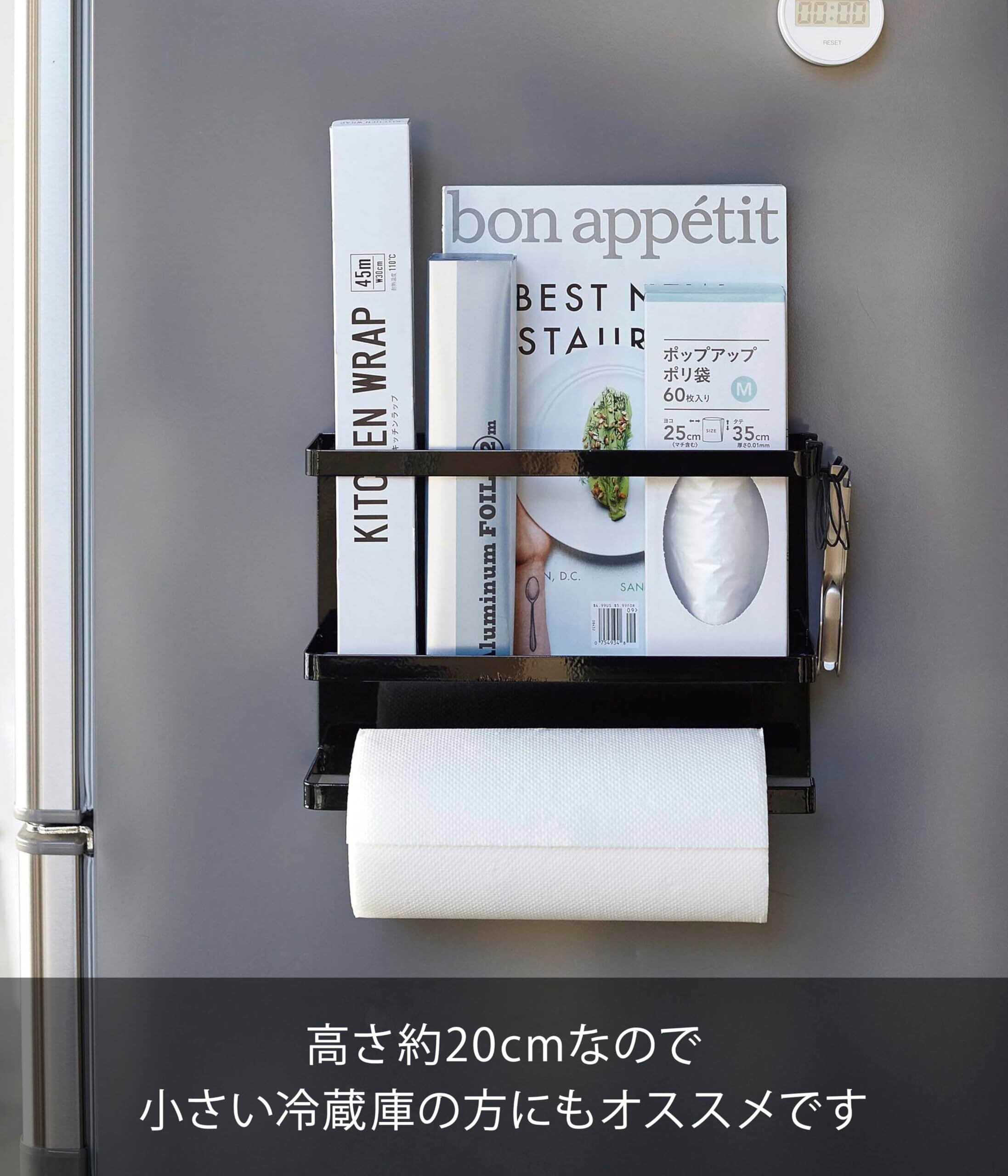 山崎実業(Yamazaki) マグネット キッチンペーパー & ラップホルダー ブラック 約W29XD8XH20cm タワー キッチンペーパーホルダー 大判タイプ対応 4397