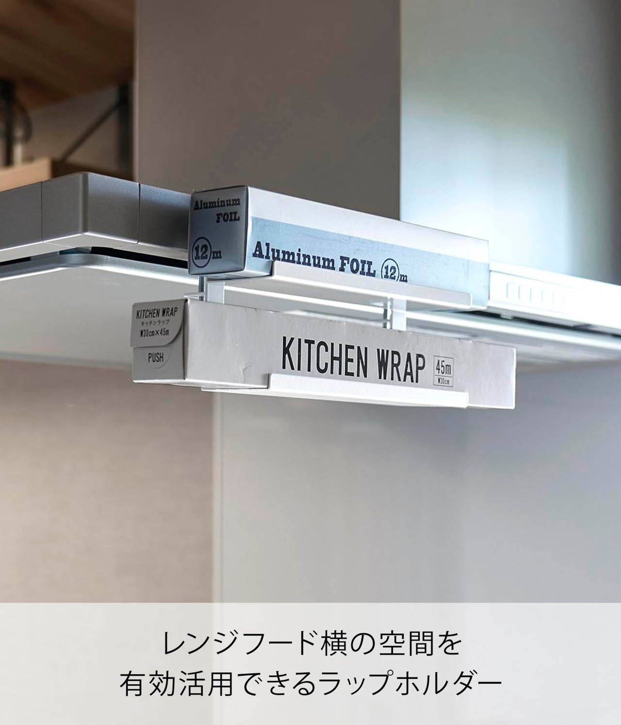 レンジフードのお好みの位置に簡単取り付けできるラップホルダー。