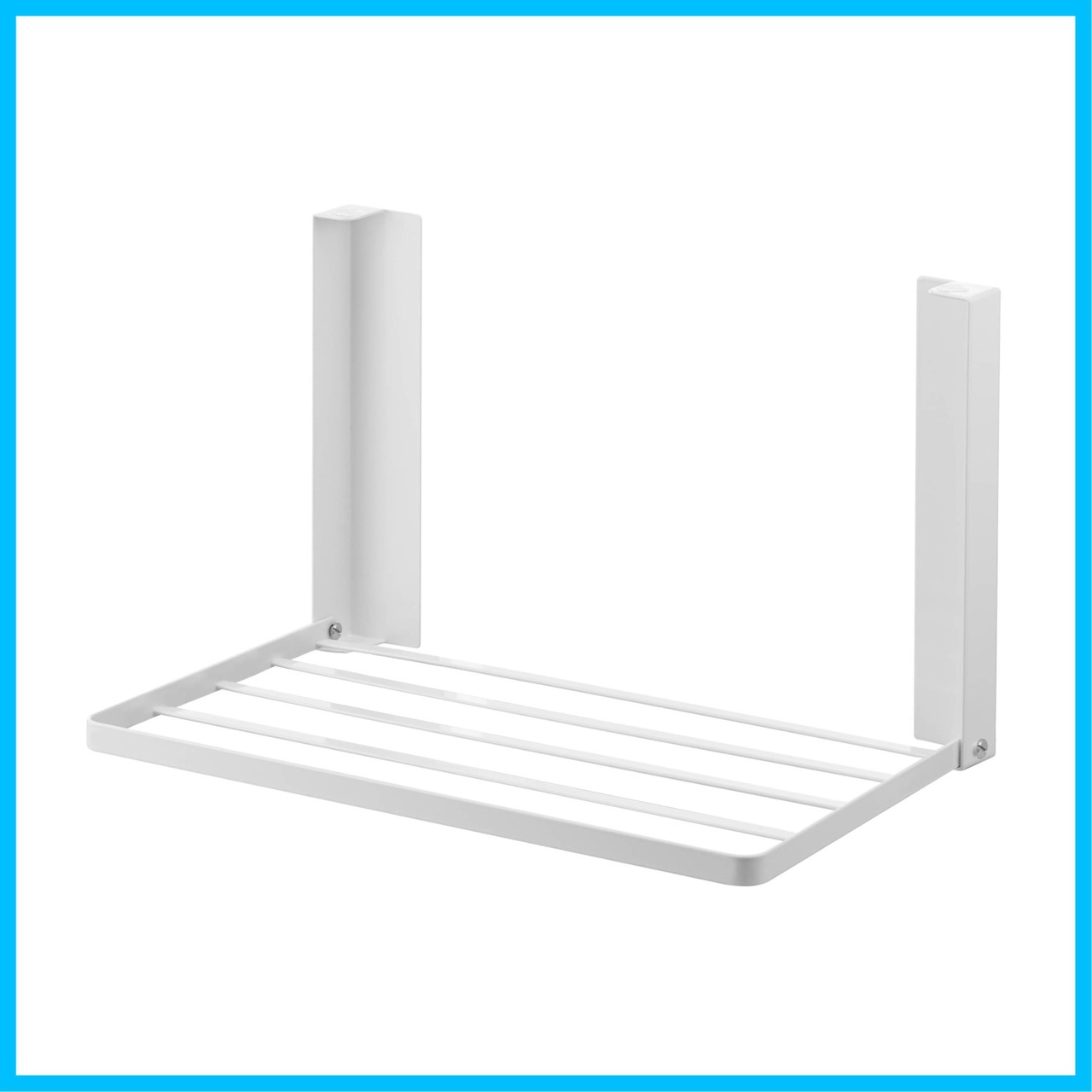 折りたためる省スペースな棚で、一時置きができて快適に。