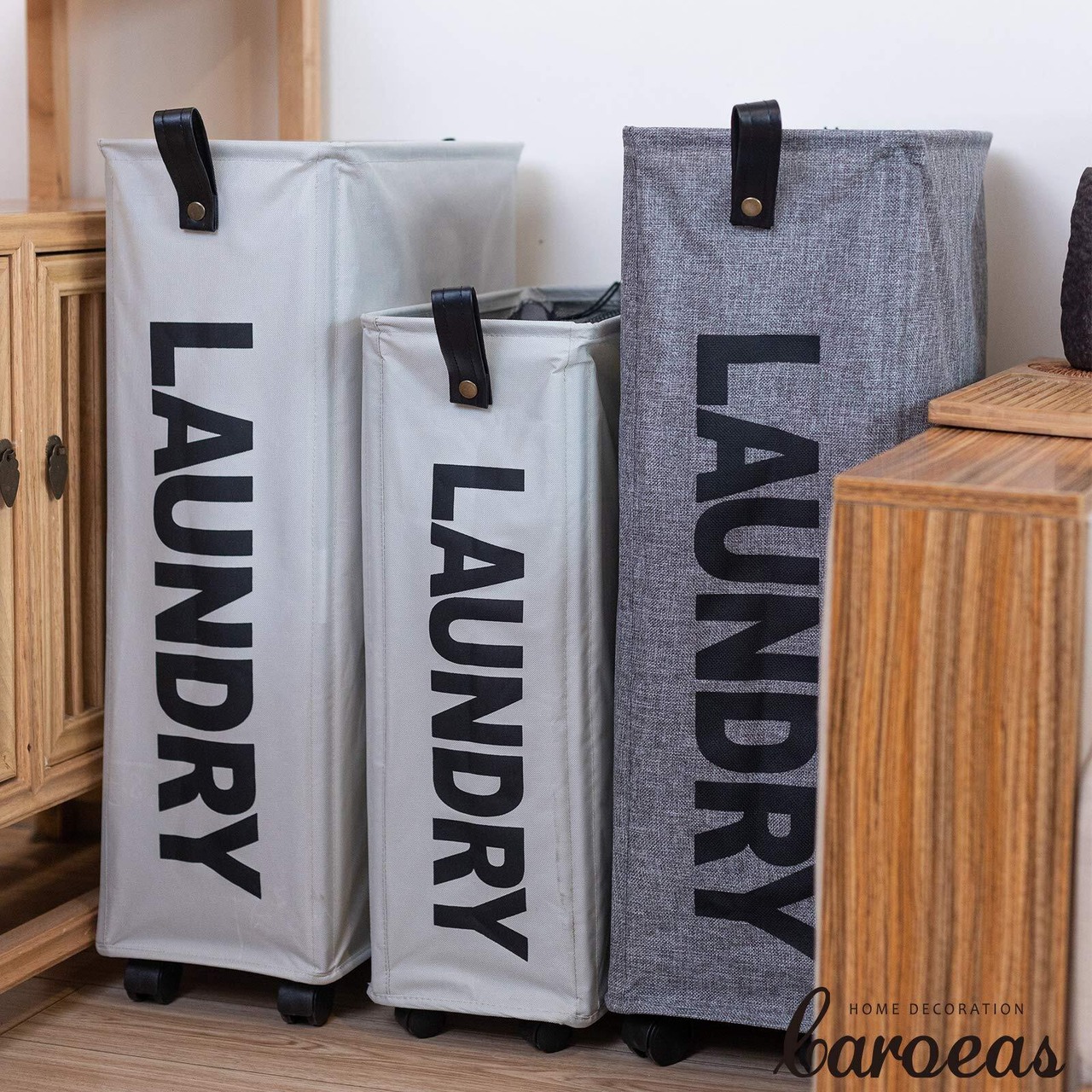 Caroeas 45L スリム 洗濯かご キャスター付き ランドリーバスケット ランドリーかご 洗濯かご 折りたたみ 撥水加工 取っ手付き 細長型ランドリーバスケット 収納便利
