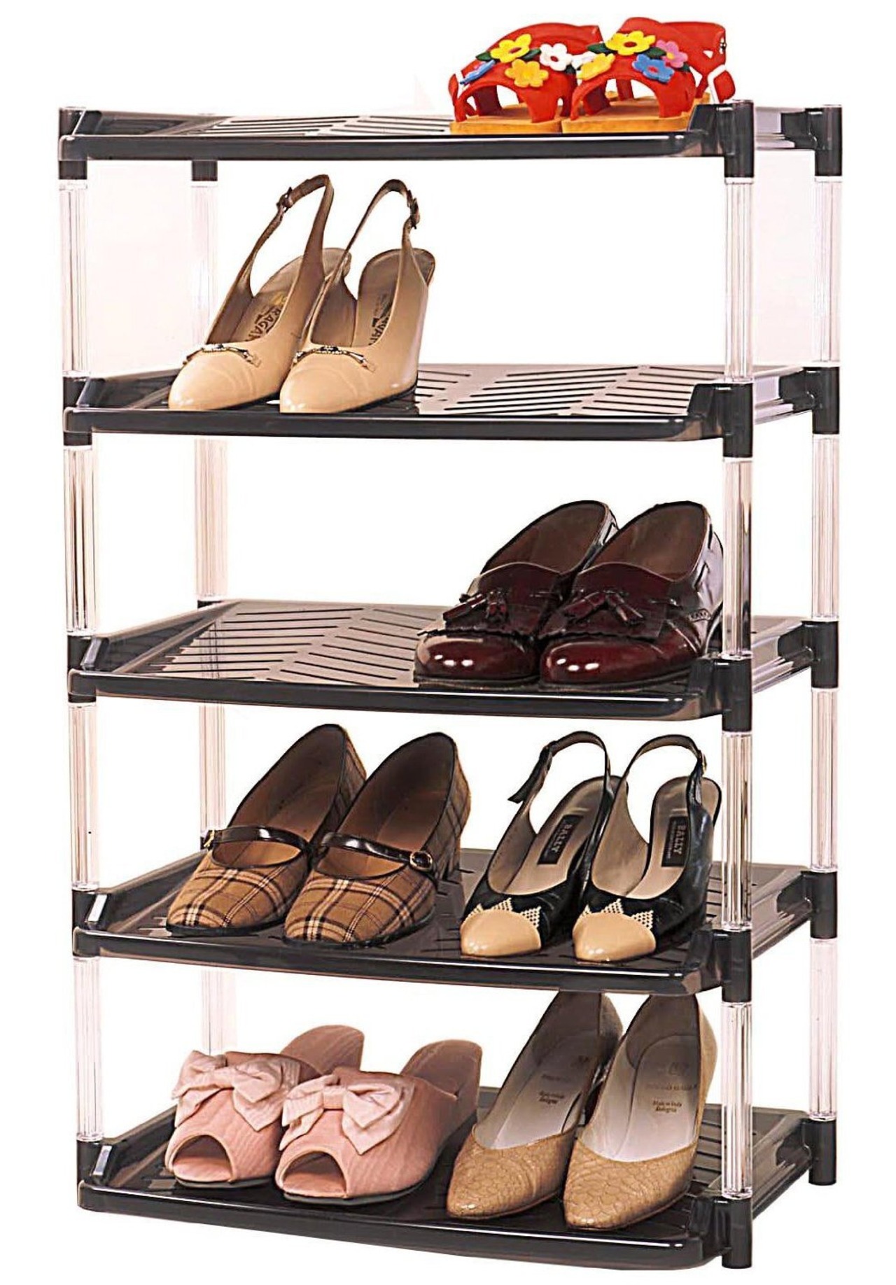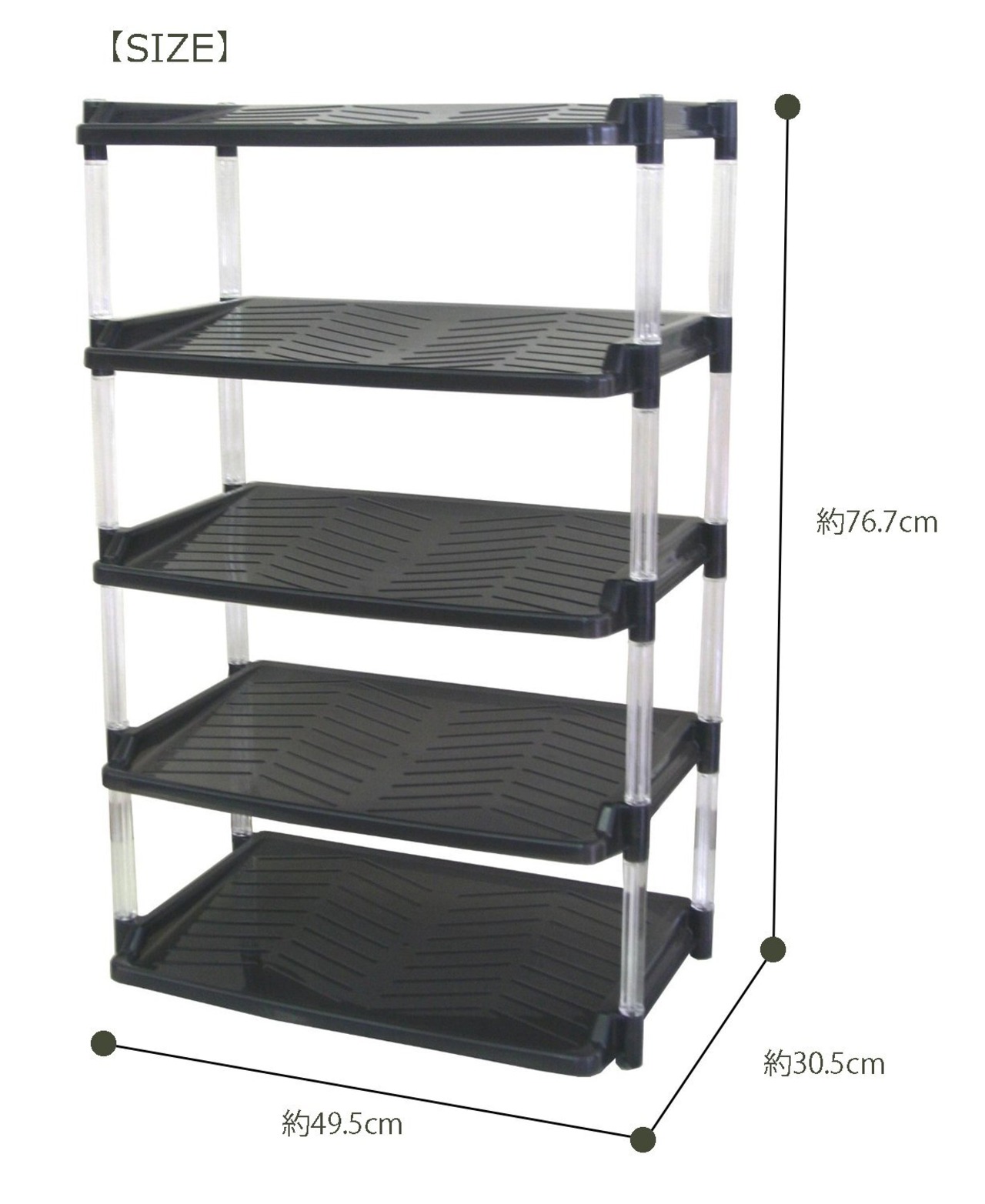 支柱が透明で高級感があるポリスチレンを使用。しっかりとした作りです。スリッパラックとしてもご使用できます。