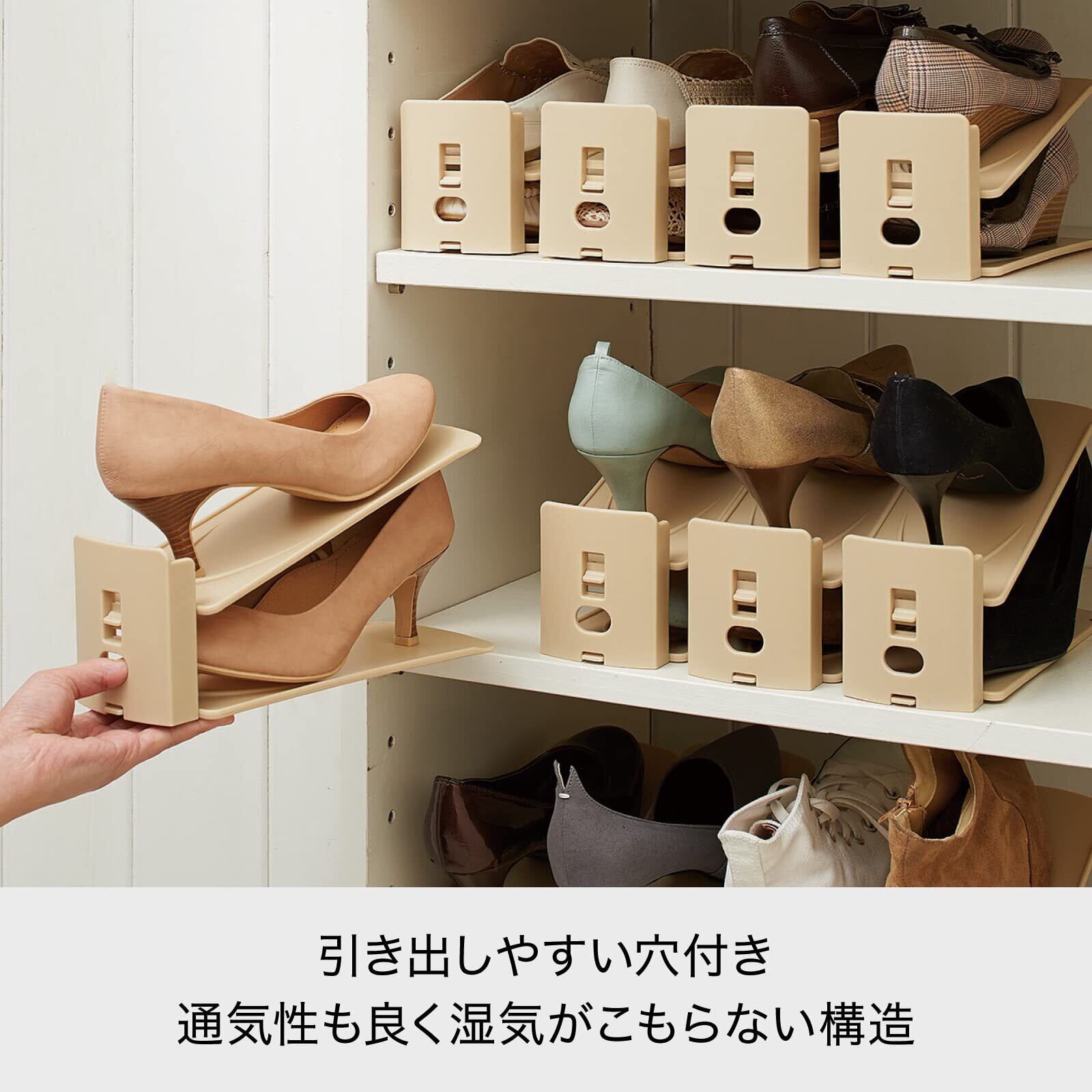 ライクイット (like-it) 靴 収納 省スペース 収納量2倍くつホルダー 高さ調節 機能付き 3P 約幅10x奥27.2x高10~18.5cm ベージュ 日本製 スニーカー収納 男女兼用