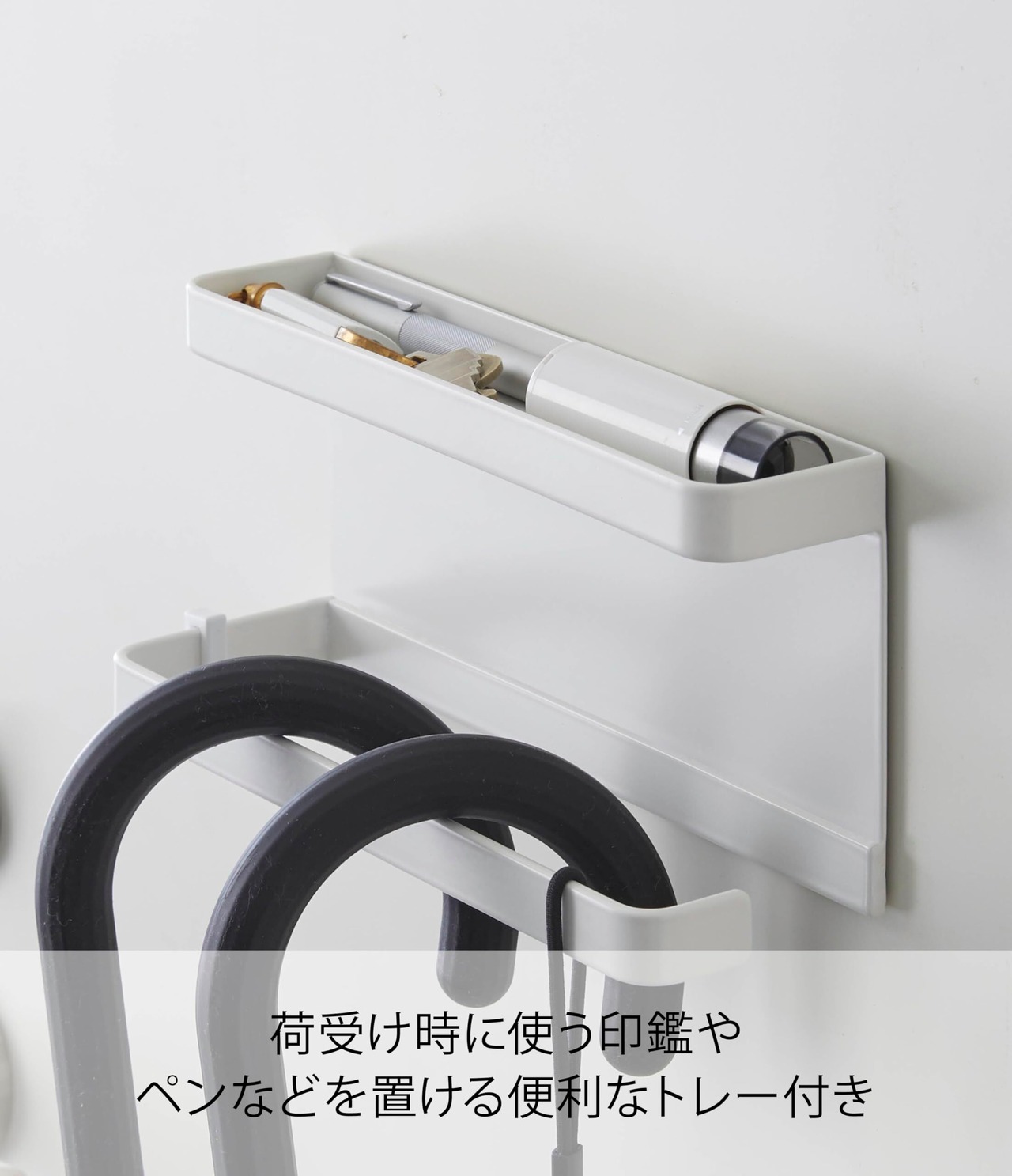 山崎実業(Yamazaki) トレー付きマグネット アンブレラホルダー ホワイト 約W20XD7XH9.5cm スマート 傘立て 玄関扉収納 フック付き 5041