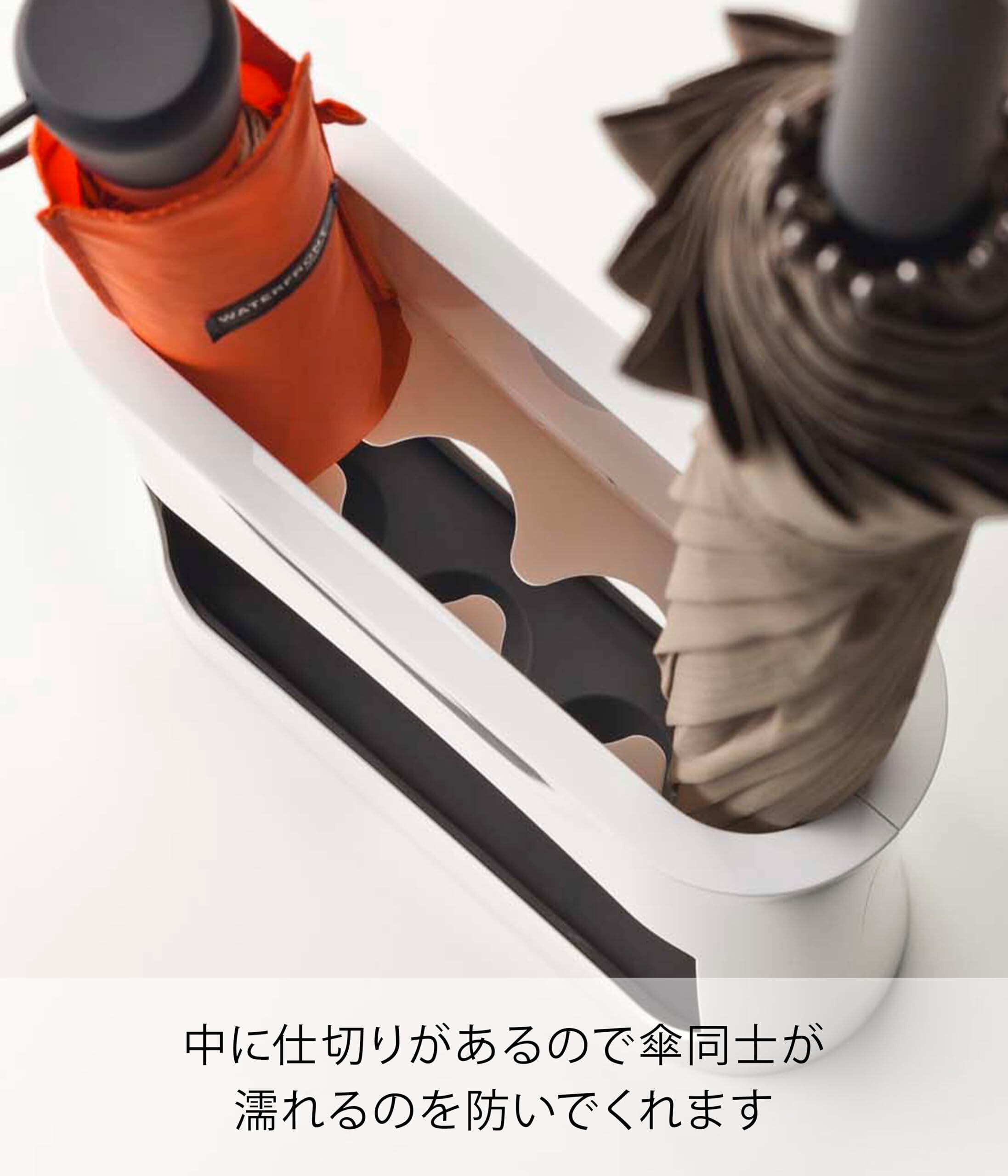 エントランスをクールに演出してくれるコンパクトでスタイリッシュなアンブレラスタンドです。中に仕切りがあるので傘同士が濡れるのを防いでくれます。また仕切りを利用して折り畳み傘を収納可能!