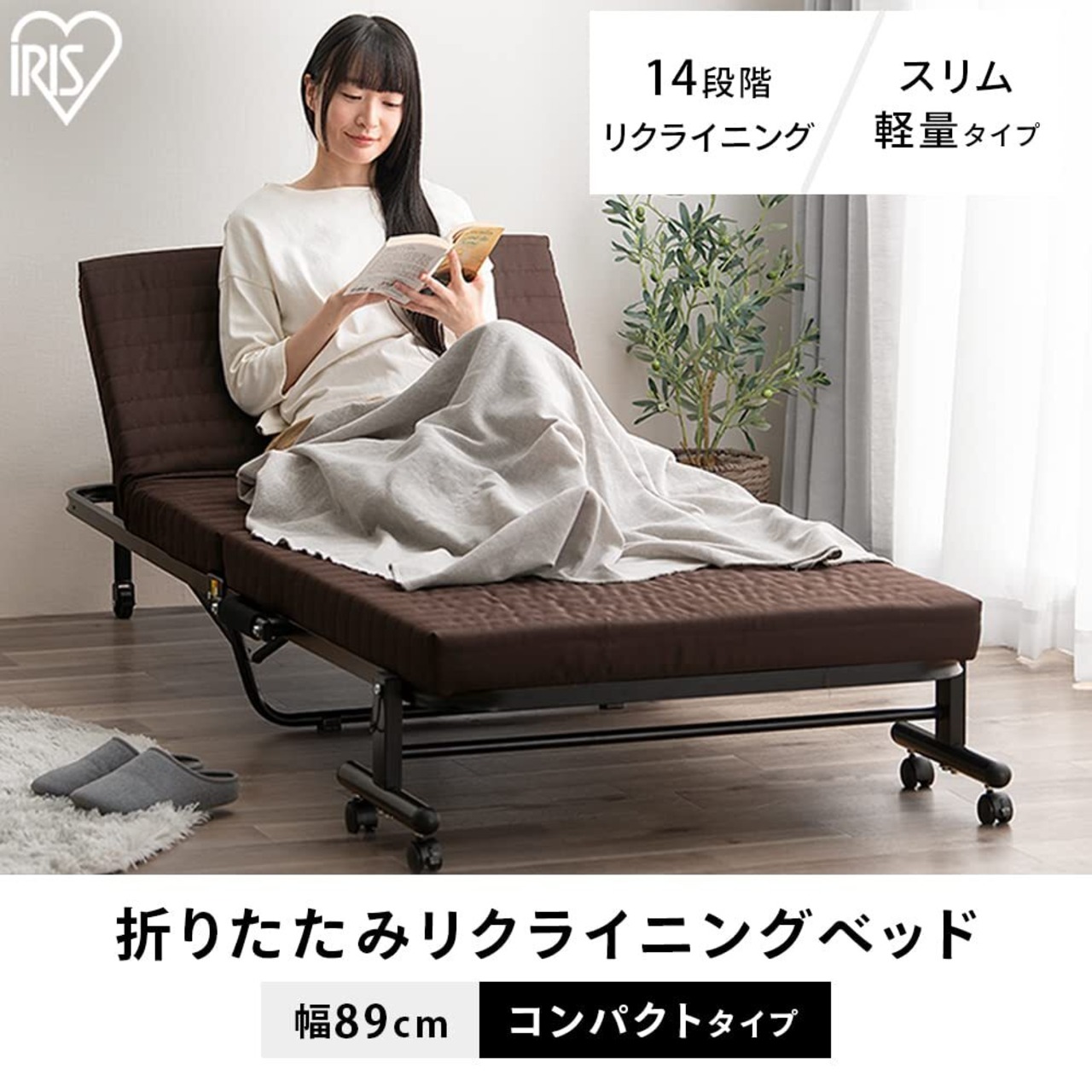 幅約89cmコンパクトタイプの折りたたみベッド。