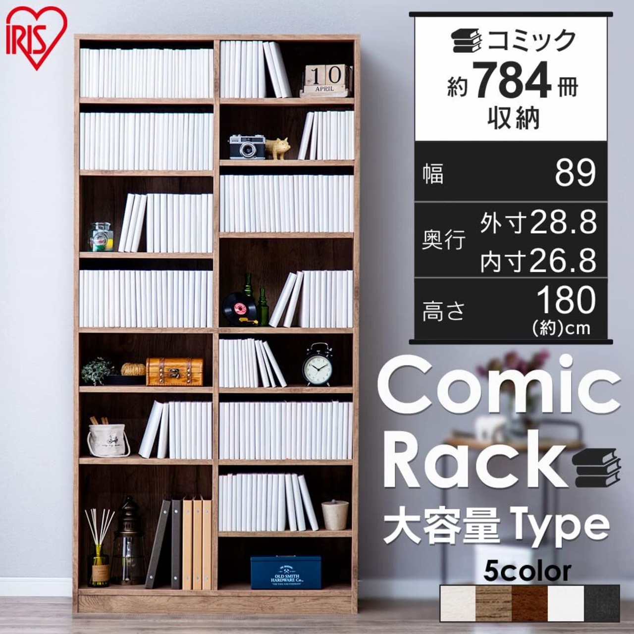 【在庫セール】アイリスオーヤマ 本棚 幅89×奥行28.8×高さ180.0㎝ 8段 棚板可動 オープンラック 大容量 組立品 アッシュブラウン CORK-1890