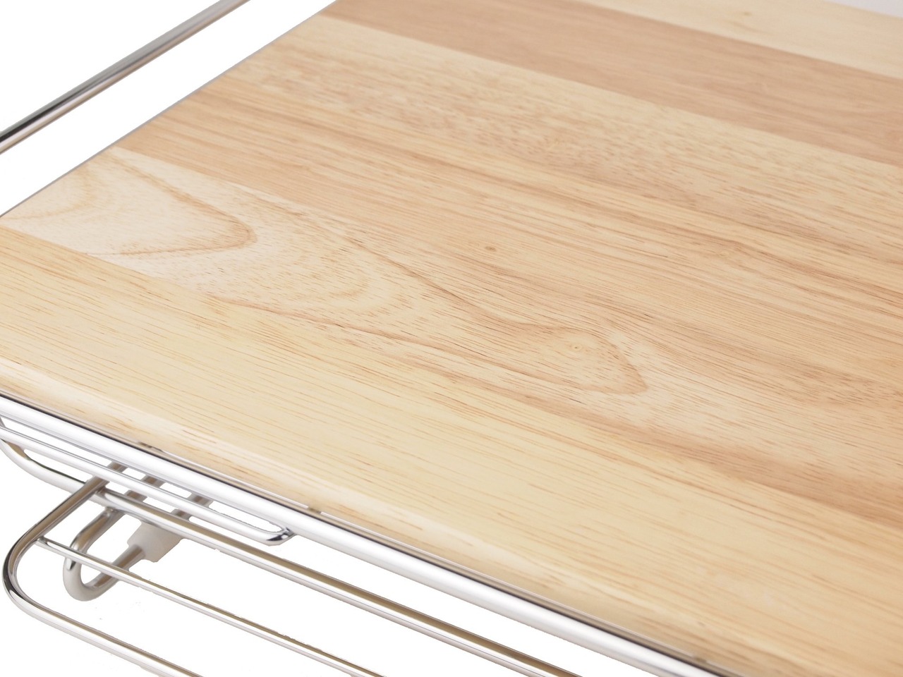 <b>材質:</b> 金属部/鉄(クロムめっき)、木部/天然木(ゴムの木)、足/合成ゴム