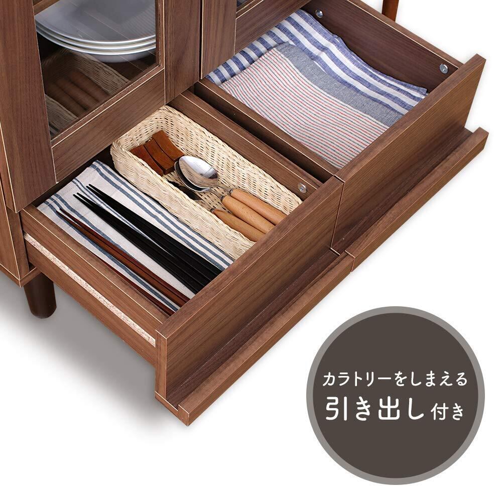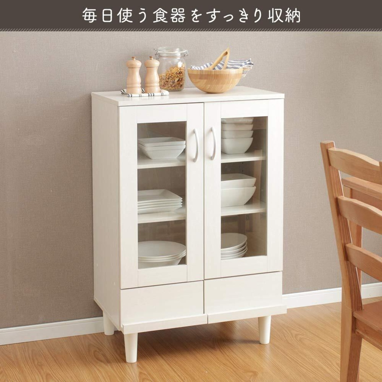 アイリスオーヤマ 食器棚 一人暮らし ミニ スリム 木目調 引出し付き 可動棚 幅60×奥行42.3×高さ93.7cm オフホワイト KPB-9360