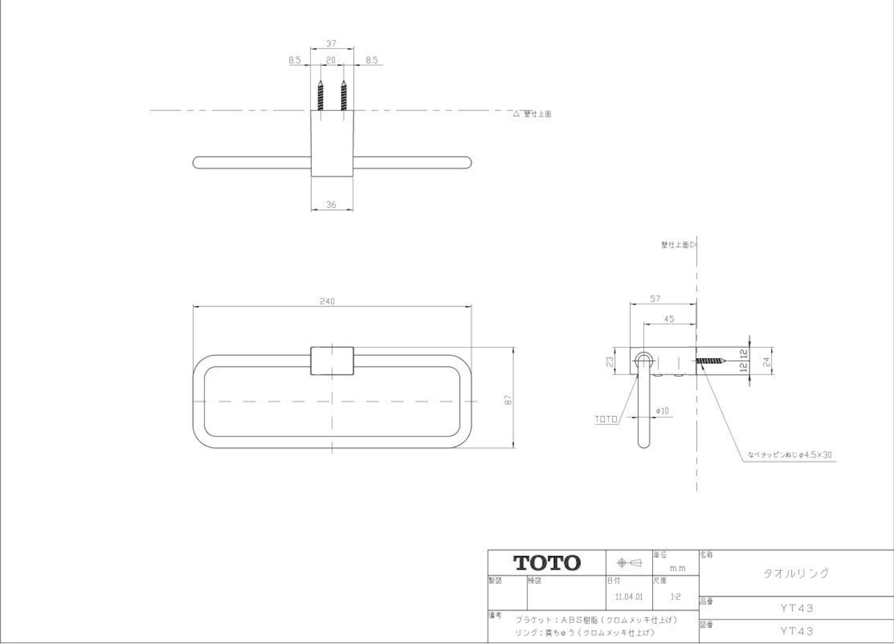【特価商品】TOTO タオルリング 樹脂系 YT43