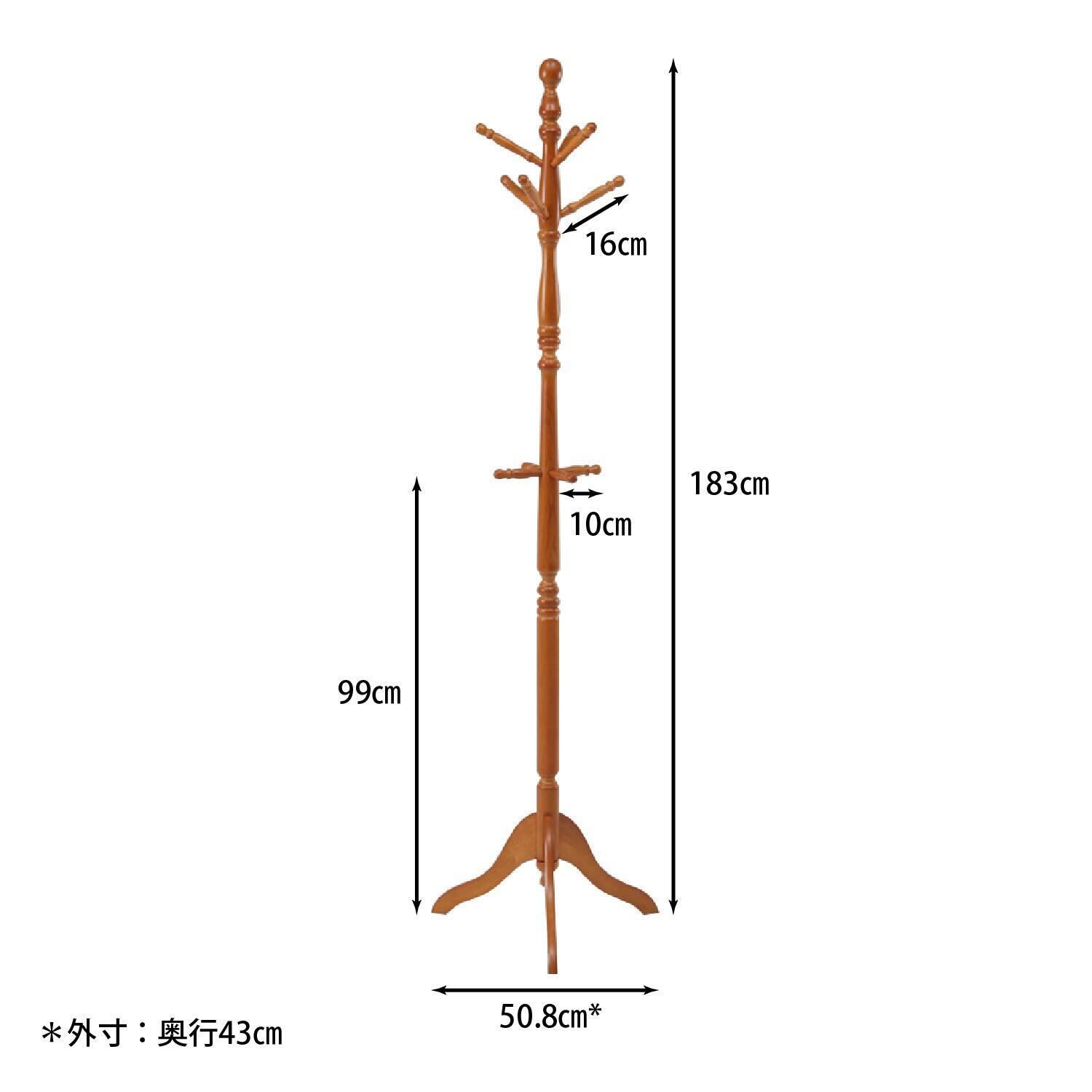 不二貿易 コートハンガー ハンガーラック 木製 幅50.8×奥行43×高さ183cm ブラウン 玄関収納 小枝フック アンティーク調 27872