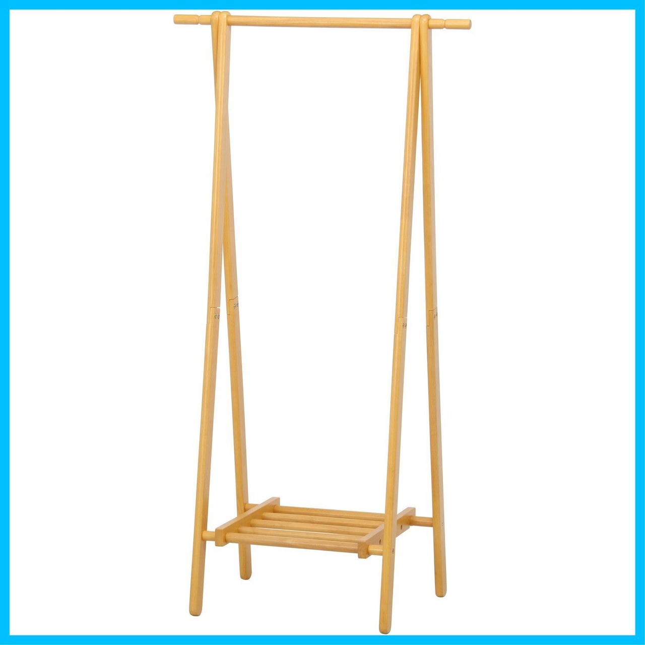 不二貿易 コートハンガー ハンガーラック スリム 木製 幅75×奥行45×高さ147.8cm ナチュラル 棚付き 玄関 14104