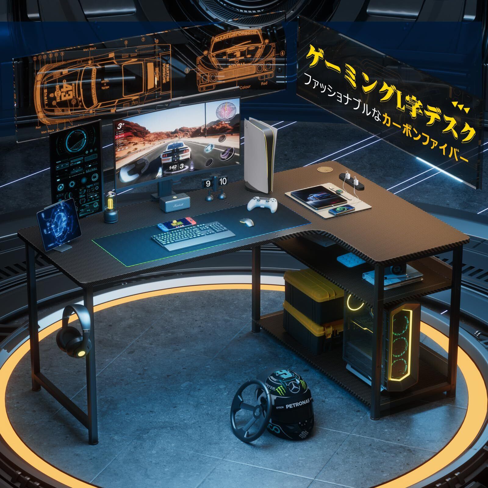 【在庫処分】GTRACING ゲーミングデスク カーボン調 コンセント付き パソコンデスク L字 ラック付き モニターアーム対応 棚高さ調節可能 配線穴 右棚 79奥行き*110幅*74.5高さ DL001 ブラック 机 pcデスク 勉強机 ゲームデスク 棚付きl字デスク オフィス 書斎 ワーク