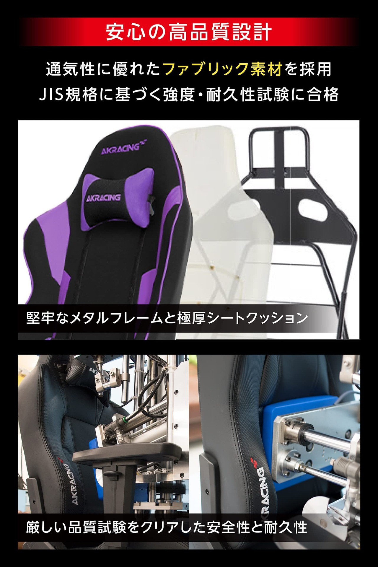 安心のメーカー(AKRacing)5年保証 (張地(レザー・クロス)の摩耗・劣化、昇降機構の故障については5年保証の対象外となります。詳しくはAKRacingホームページの製品保証規定をご確認ください。)