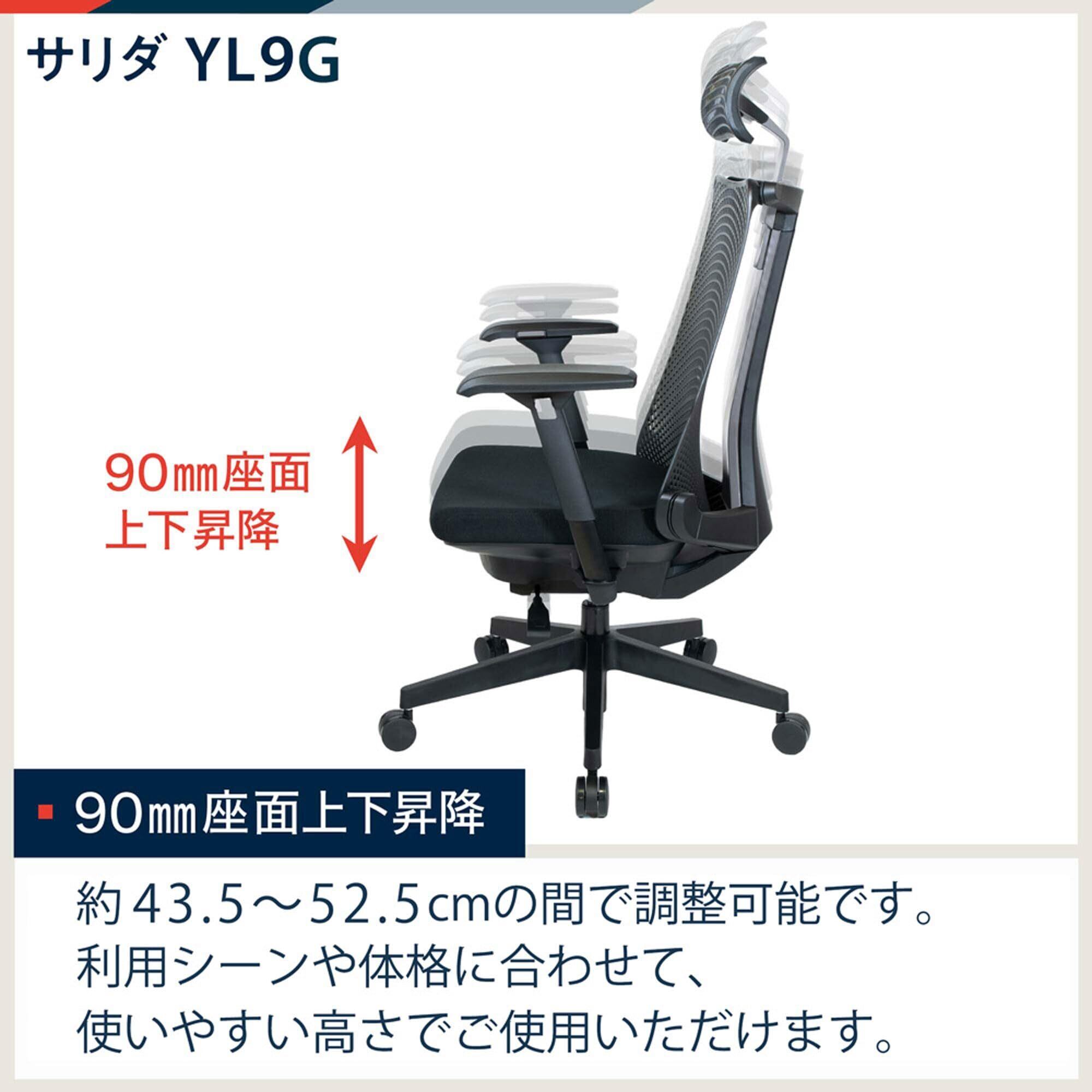 【ITOKI SALIDA YL9シリーズ】累計販売台数2万5000千台を突破した大人気シリーズ。サリダ YL9Gは細かく調整可能な4Dアームレストを搭載。厚めの柔らかいモールドウレタン製クッションを採用し、ゲームプレイを快適にサポートします。