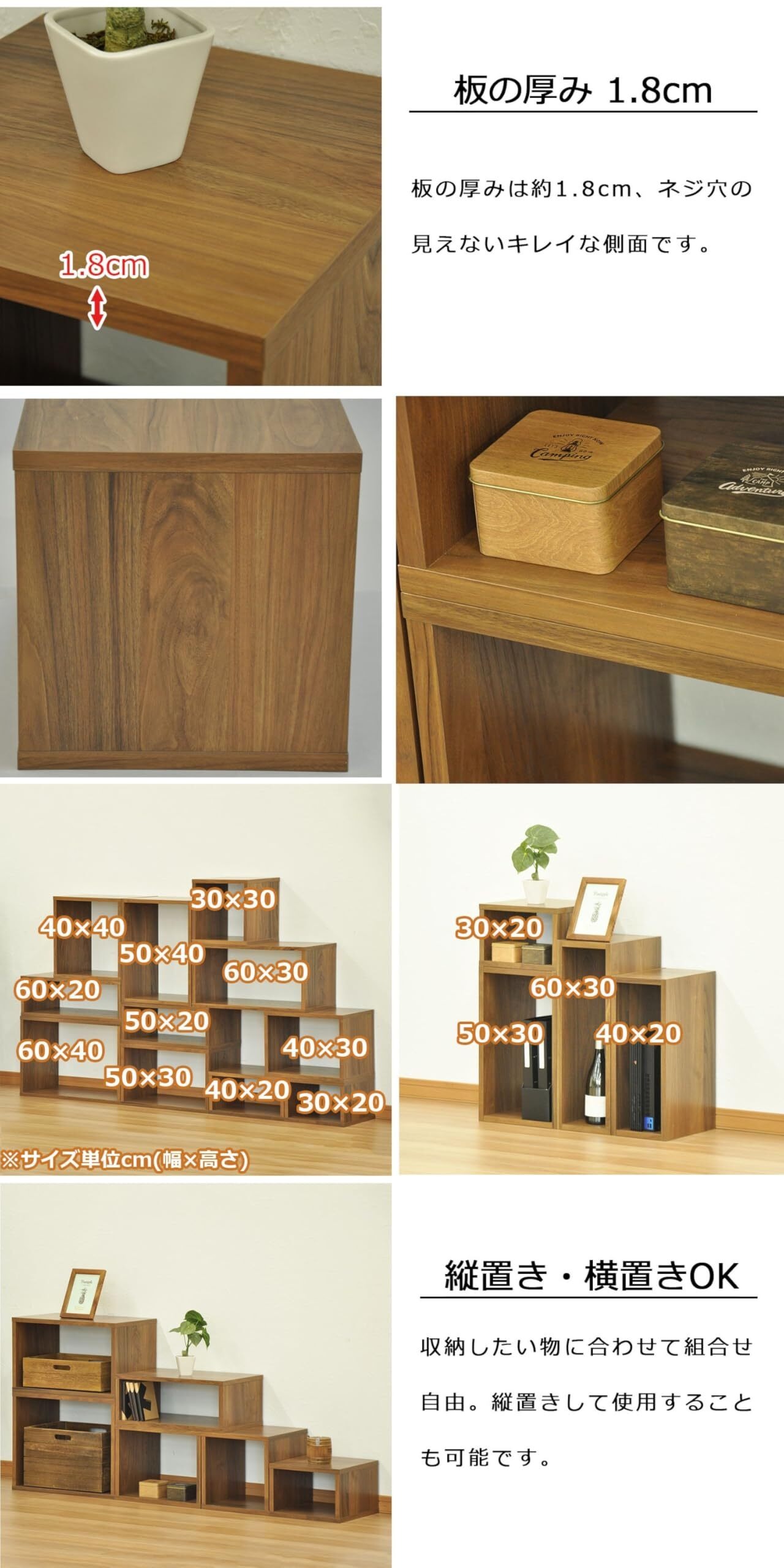 商品サイズ(約):幅50×奥行30×高さ20cm、板厚:1.8cm、内寸(約):幅46.3×高さ16.3cm