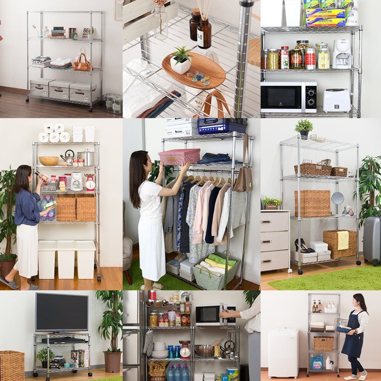 材質 シェルフ(棚)・ポール:スチール(クロームメッキ)、スリーブ:ABS樹脂