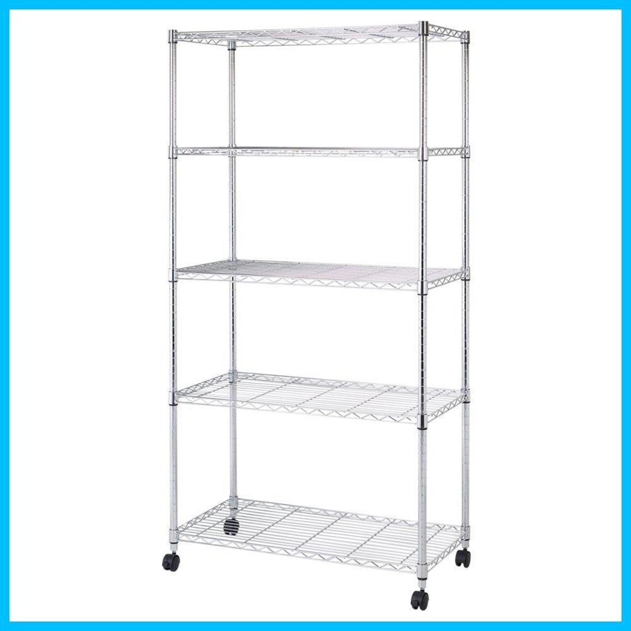 ドウシシャ 棚 ルミナス互換 メタルルミナスラック 幅90 5段 スチールラック 収納棚 幅90×奥行46×高さ180cm 全体耐荷重400kg 頑丈 キャスター付き 防錆加工 ポール径25mmパーツ対応 業務用 シェルフ キッチン収納 EL25-90185