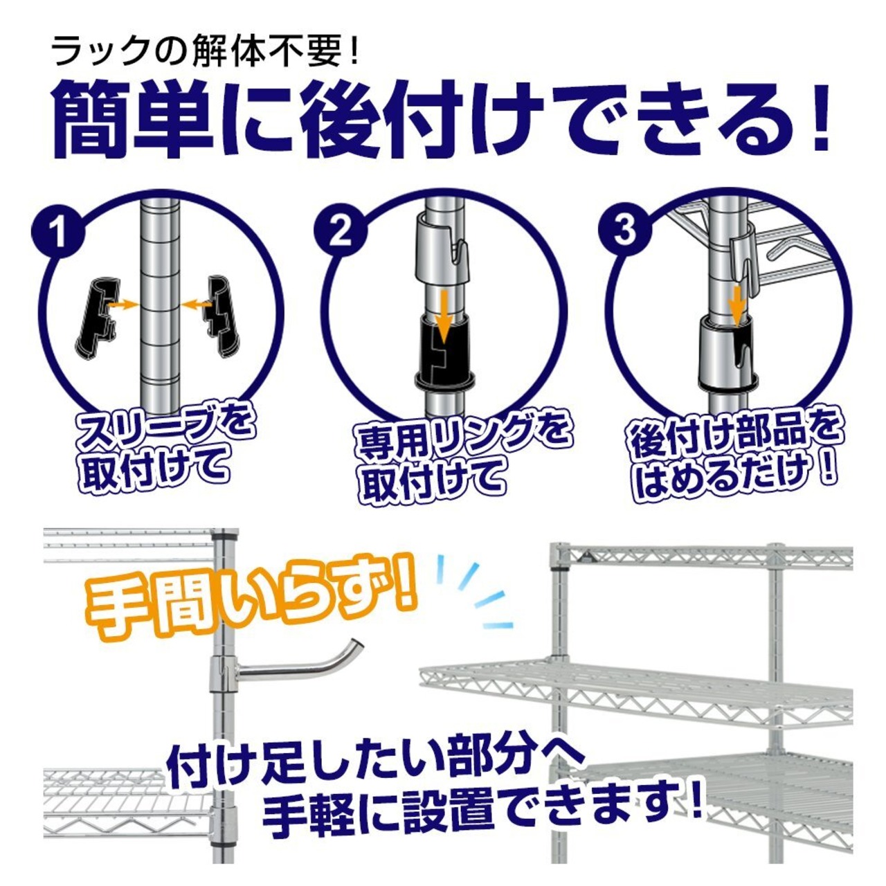 「ルミナススチールワイヤーラックシリーズ」「ドウシシャ製スチールラック」は 他メーカーのラック(メタルラック・メタルシェルフ等)には互換性はございません。