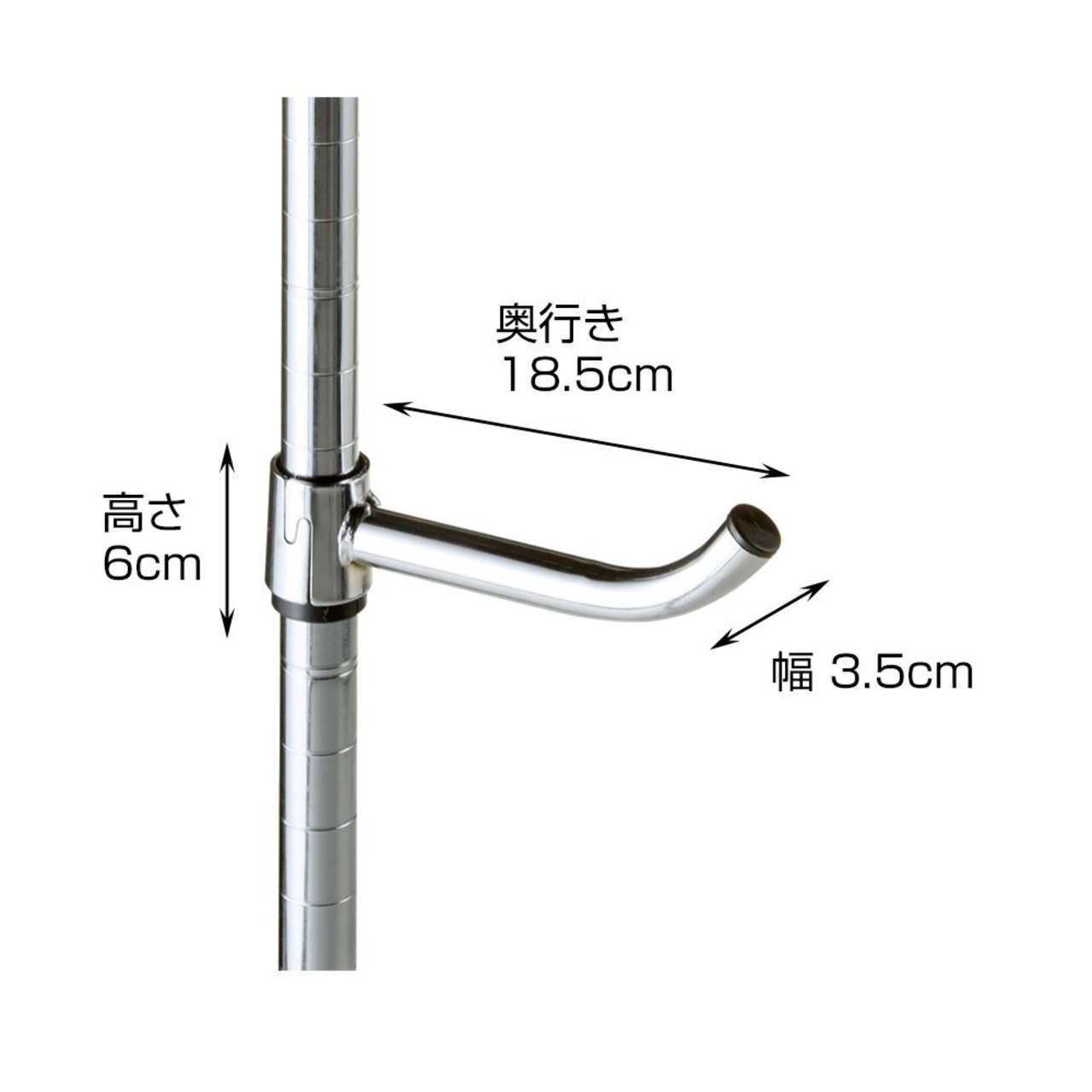 ドウシシャ ルミナスラック スチールラックパーツ 後付け回転フック ちょい掛けに便利 長さ15cm 直径1.9cm 25APF-15 ポール径25mm用パーツ 耐荷重3kg 頑丈 大容量 鞄 カバン 洋服 帽子 マフラー ストール ハンガーポール