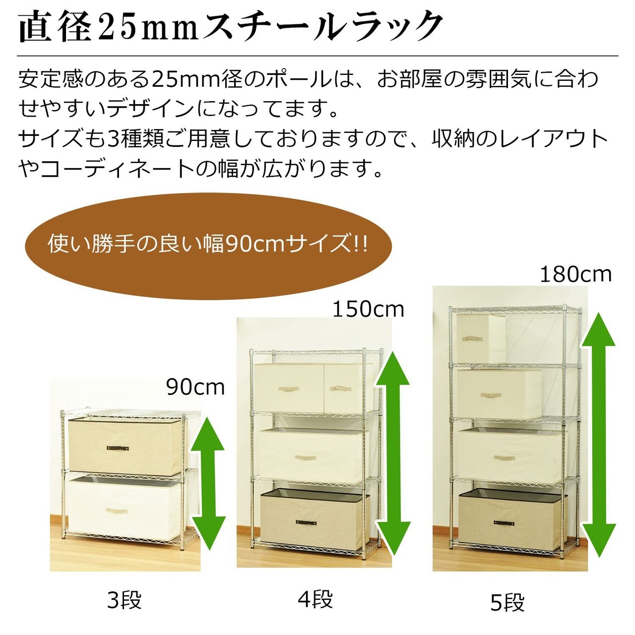 ●様々な物の収納に便利で頑丈な、支柱径25mmの3段スチールラック。