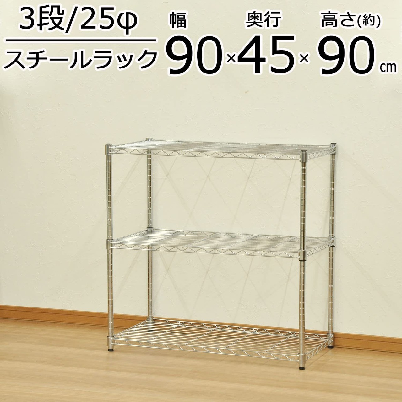 エイアイテック(AITECH) AIS 25φスチールラックセット3段 幅90×奥行45×高さ90cm 組立品 メッキ YSR-9090