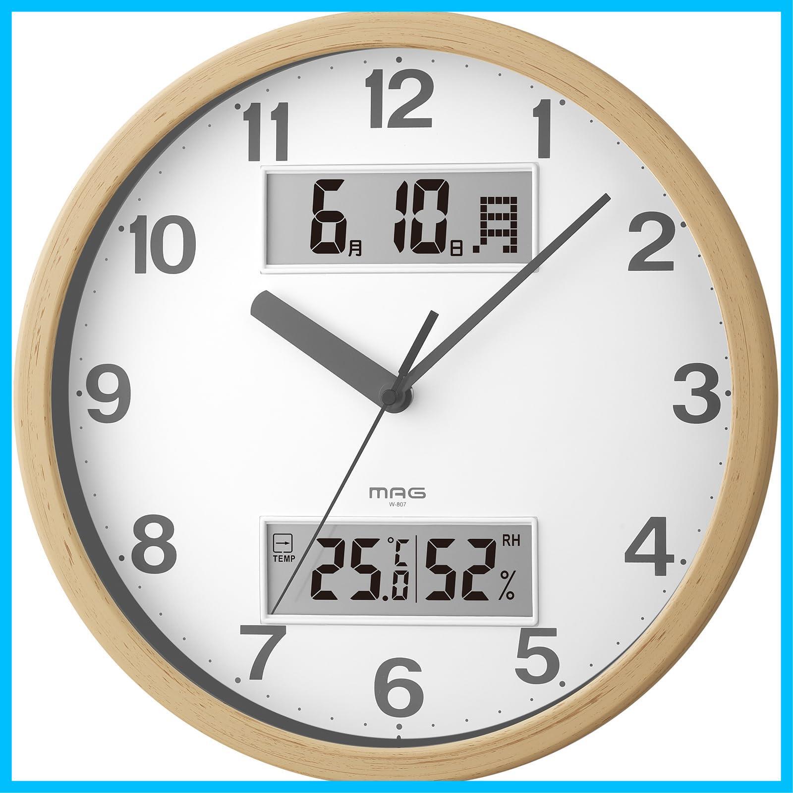 MAG(マグ) 掛け時計 壁掛け時計 アナログ おしゃれ インテリア 温度計 湿度計 温湿度計 カレンダー 静音 連続秒針 直径29.0㎝ 木目調 ナチュラル ダブルポイント W-807A N-Z ノア精密