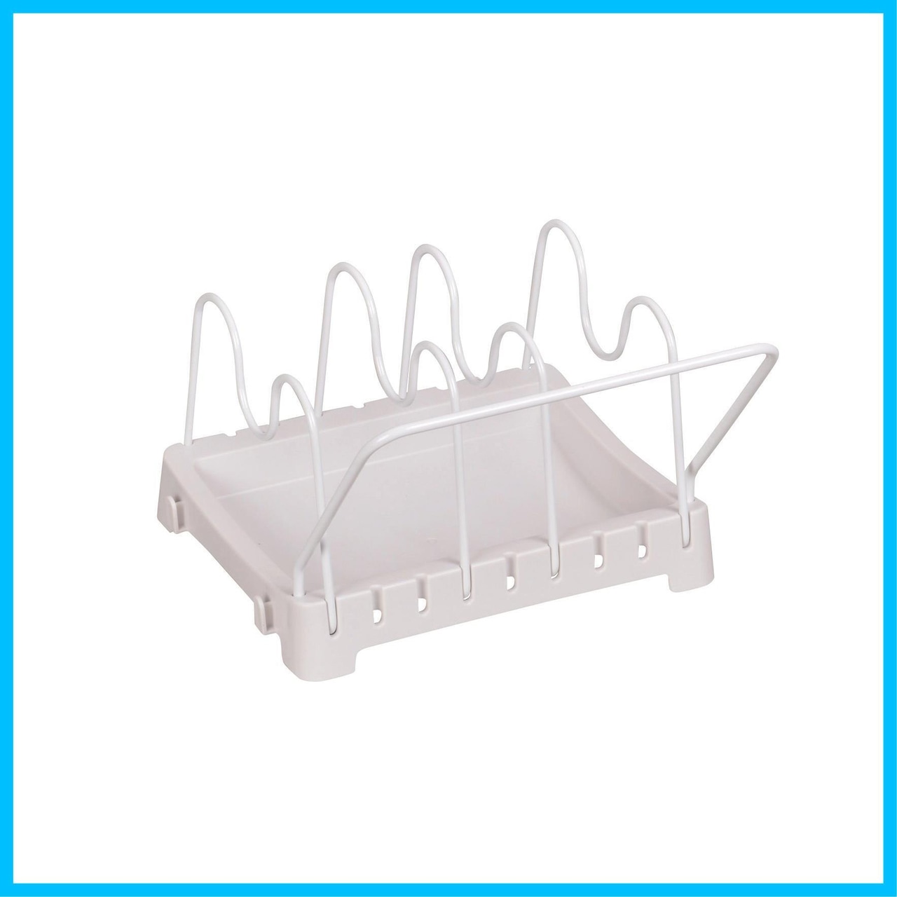 ー:鉄(メラミン焼付け塗装) すべり止め:シリコーンゴム 仕様 組立品 タテ置き・ヨコ置き兼用 仕切り4本付 製造国 日本 鍋やフライパンを引き出しにスッキリ収納!! 引き出し内で自由な向きで使えます。約14~28cm