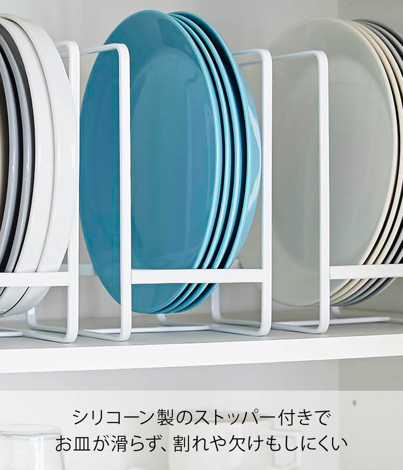 大皿から小皿まで立てて収納できるので出し入れもスムーズ!種類別・サイズ別に分けて省スペースにたくさん収納できます。