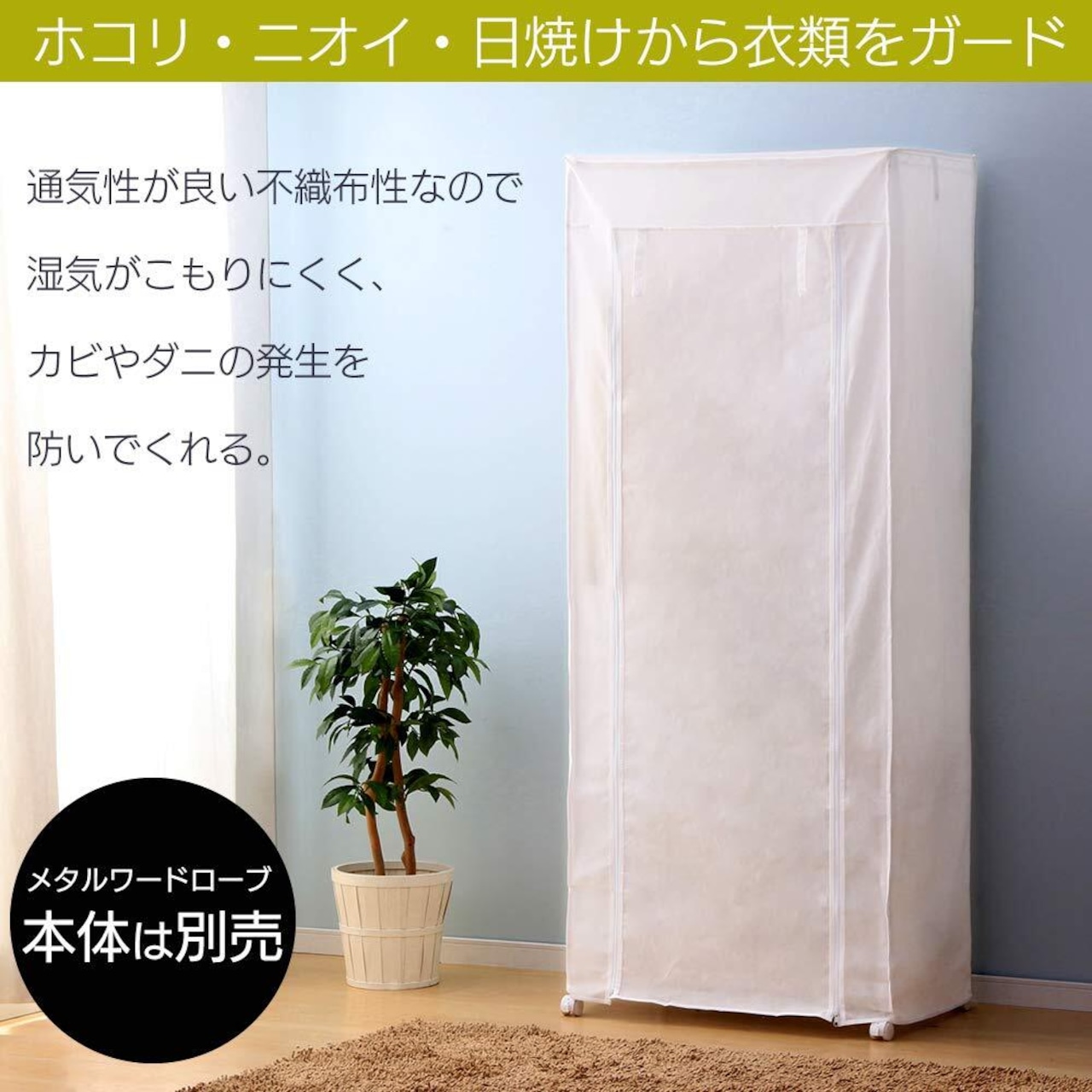 ※ワードローブカバー単品の販売ページです。メタルラックは含みません。