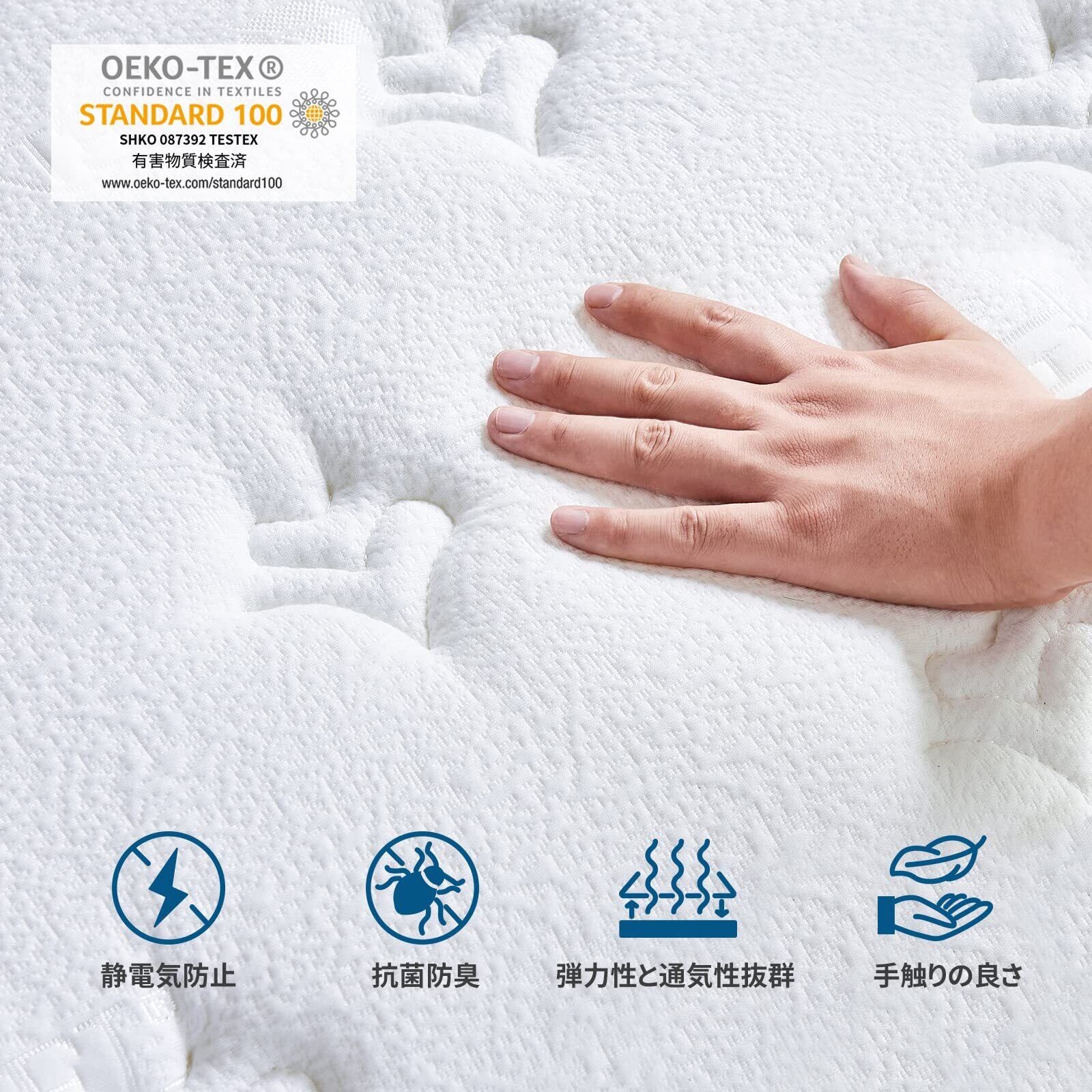 【テンセルニットで快適な寝心地】 ポケットコイルマットレスは四角い星ような新型な緑繊維を採用している高級テンセルニット素材です。表面は滑りである、柔らかで肌触り良くて伸縮性が高いです。普通の生地より静電気に強く、皮膚が不快感を増えません。柔らかく快適で寝返りを減少することはシワができにくくなります。