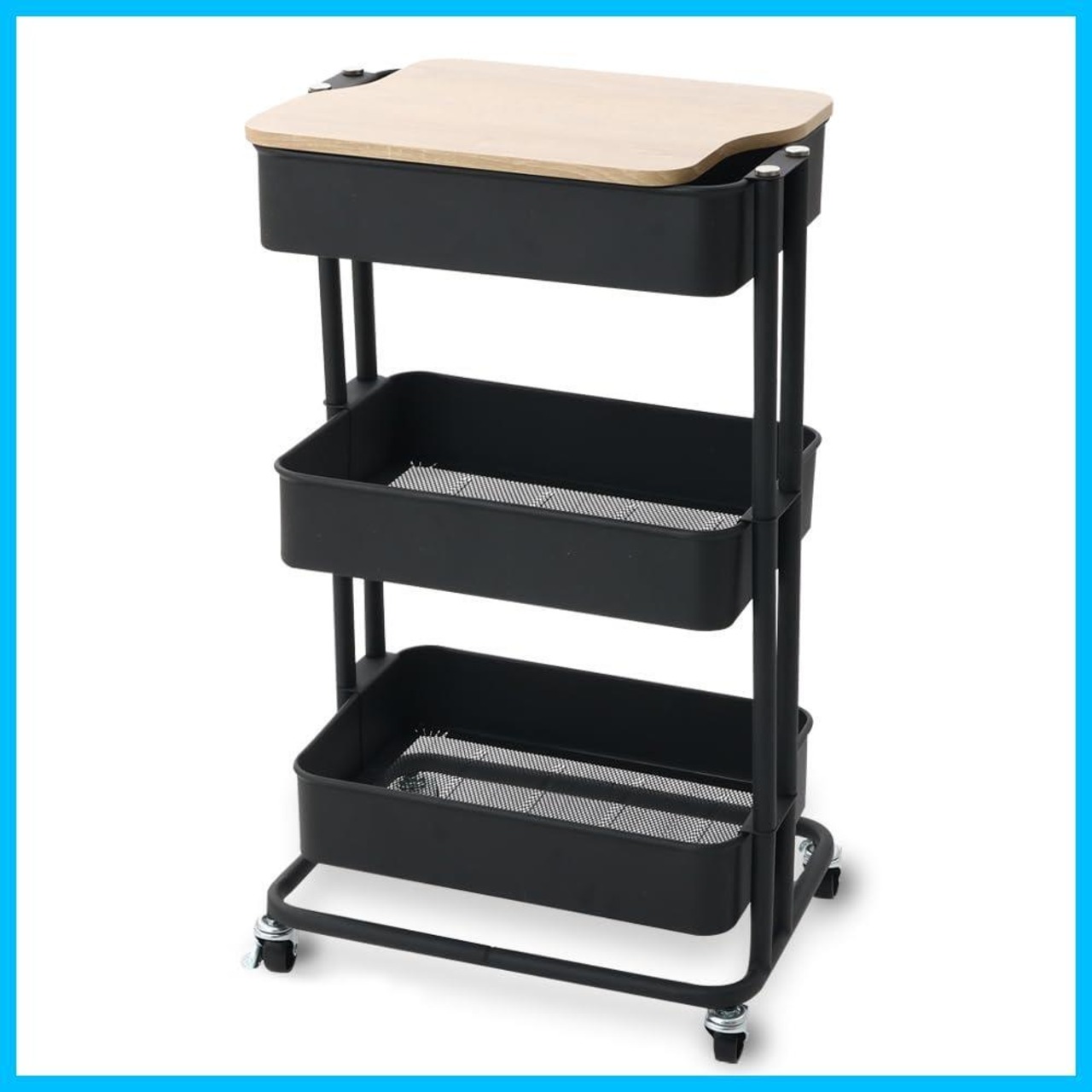 【取り出しやすくリニューアル! 】アイリスプラザ キッチンワゴン 調味料ラック バスケットラック 木天板タイプ 収納ワゴン 3段 キャスター付 幅44.5×奥行35×高さ78cm ブラック KW-L002