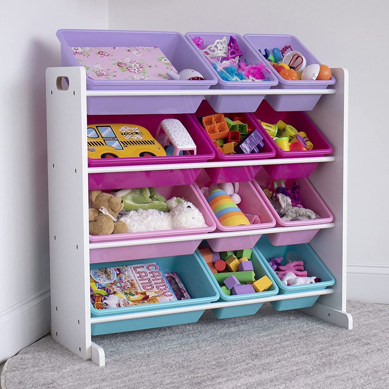 ハンブルクルー(HumbleCrew) おもちゃ収納棚 ホワイト/ピンク/パープル/ターコイズ 収納ボックス12個付き 【日本正規輸入品】 WO845
